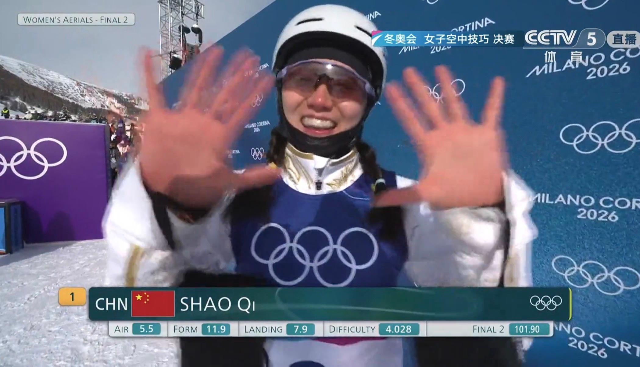 自由式滑雪女子空中技巧决赛 第一位出场的中国选手,邵琪,101.90分🇨🇳