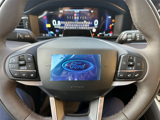 真皮多功能方向盘,12.3英寸的全液晶仪表,27英寸的中控大屏,360°全景影像,5G网络,高通骁龙8155芯片,SYNC+智能车机系统,语音识别控制,手机APP远程操作,还有很多功能不一一介绍,反正从电子配置和内饰用料来看,确实比我朋友的普拉多更有优势,更有性价比的