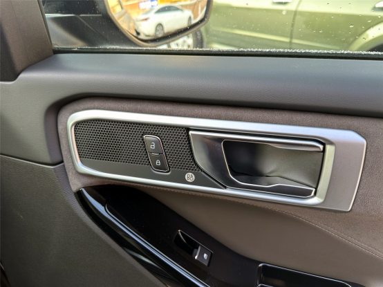经典的Bang & Olufsen音响,10个喇叭,还有车门内侧也都是软皮和皮质覆盖的,有档次
