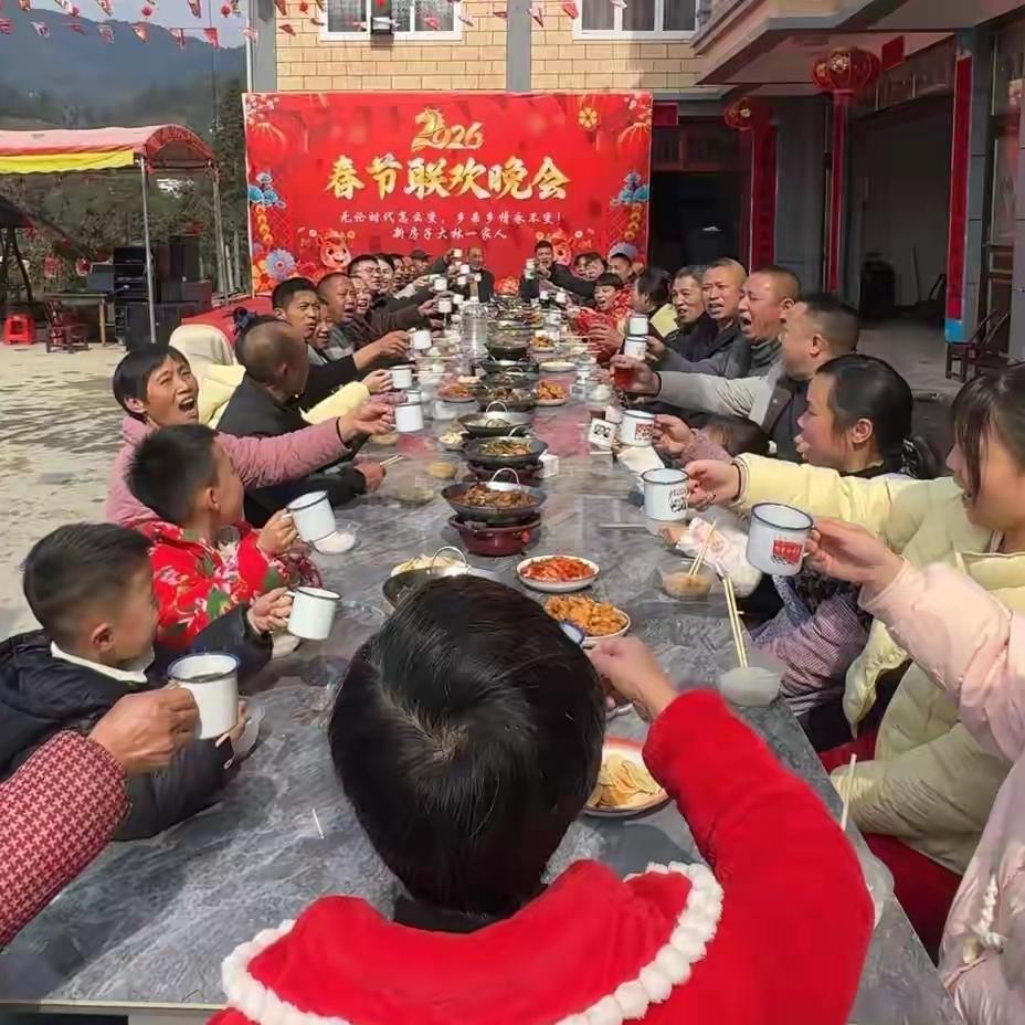 你能想象52口人一起办“春晚”是啥场面吗?在湖北恩施利川市毛坝镇善泥村,吴林一家就干了这件超牛的事儿,把无数网友都羡慕坏了! 吴林父辈有兄妹5人,经过三代繁衍成了超级大家庭。2019年他提议办家庭春晚,全家积极响应,今年已是第二届。2月14日,自家大院挂满红灯笼,“2026春节联欢晚会”背景板超醒目。 节目单排得那叫一个满,22个环节,舞蹈、歌曲啥都有。最逗的是“乡村走秀”,风车、犁、竹筐这些老物件成主角,俩戴草帽的农人一上台,滑稽动作把大家笑得肚子疼。台下蒙眼搬猪肉、拔河等比赛也热闹非凡。 吴林把视频发抖音,5万多人点赞评论。原来,父辈四兄弟房子挨着,姑姑一家也在附近。之前老屋遭火灾,一家人齐心重建,感情更深厚。这样有亲情有年味的家庭春晚,你羡慕不?要是你家办,会有啥特色?快来聊聊!