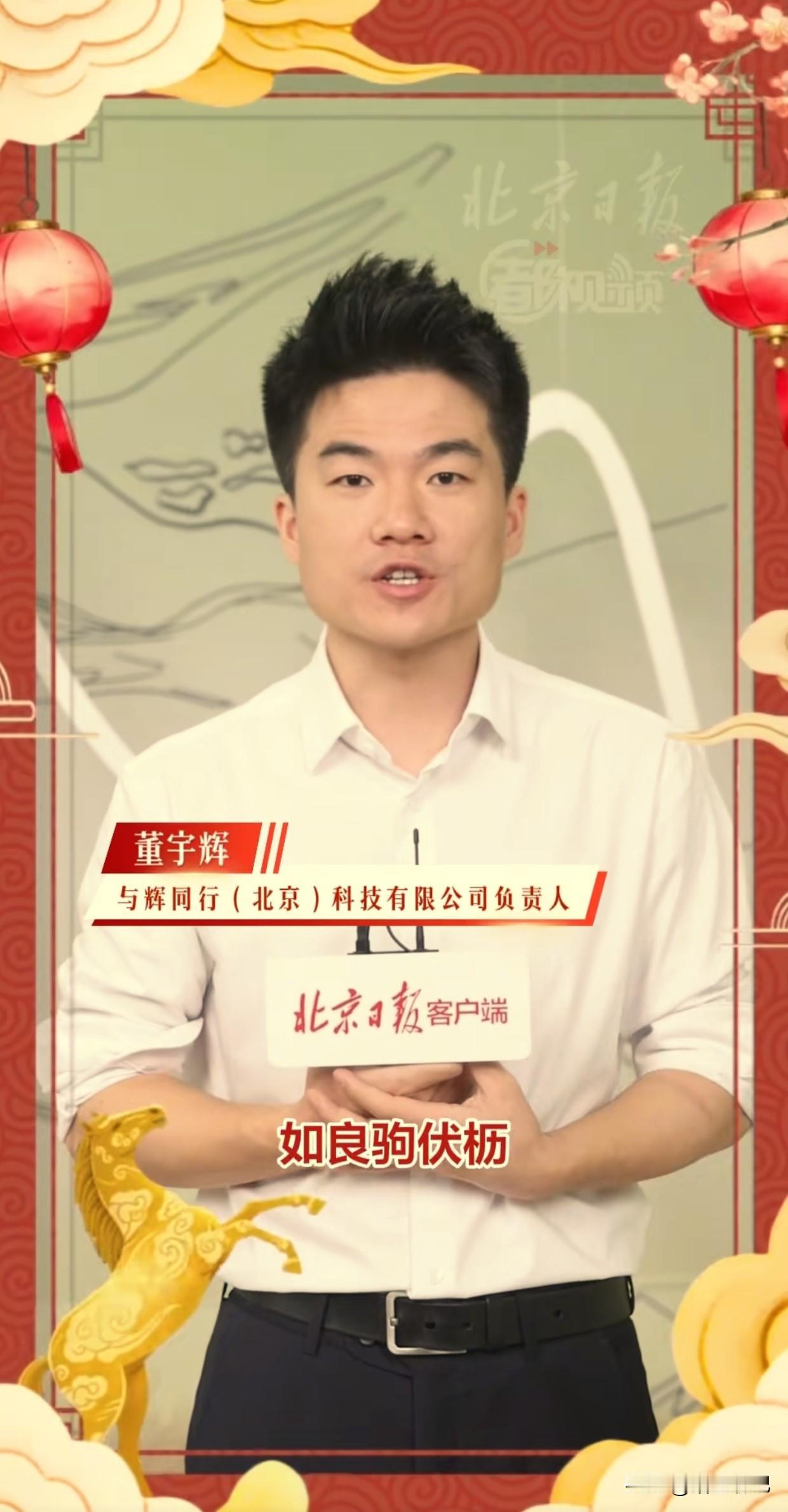大年初二,董宇辉祝我们如良驹伏枥,志在千里,拥有闲庭信步的从容,积蓄龙马精神的力量。 三年多来,他的语言还是那么清奇,祝福总是说得不落俗套。 出现就让人觉得惊喜和心安的人,总是让人充满期待。 所以,他出现的地方时常是人声鼎沸,夹道欢迎。 现场如此,评论区亦是。