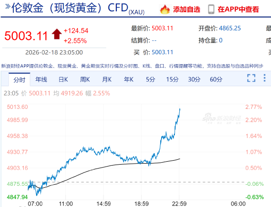 现货黄金再度站上5000美元/盎司 日内涨幅超2.5%
