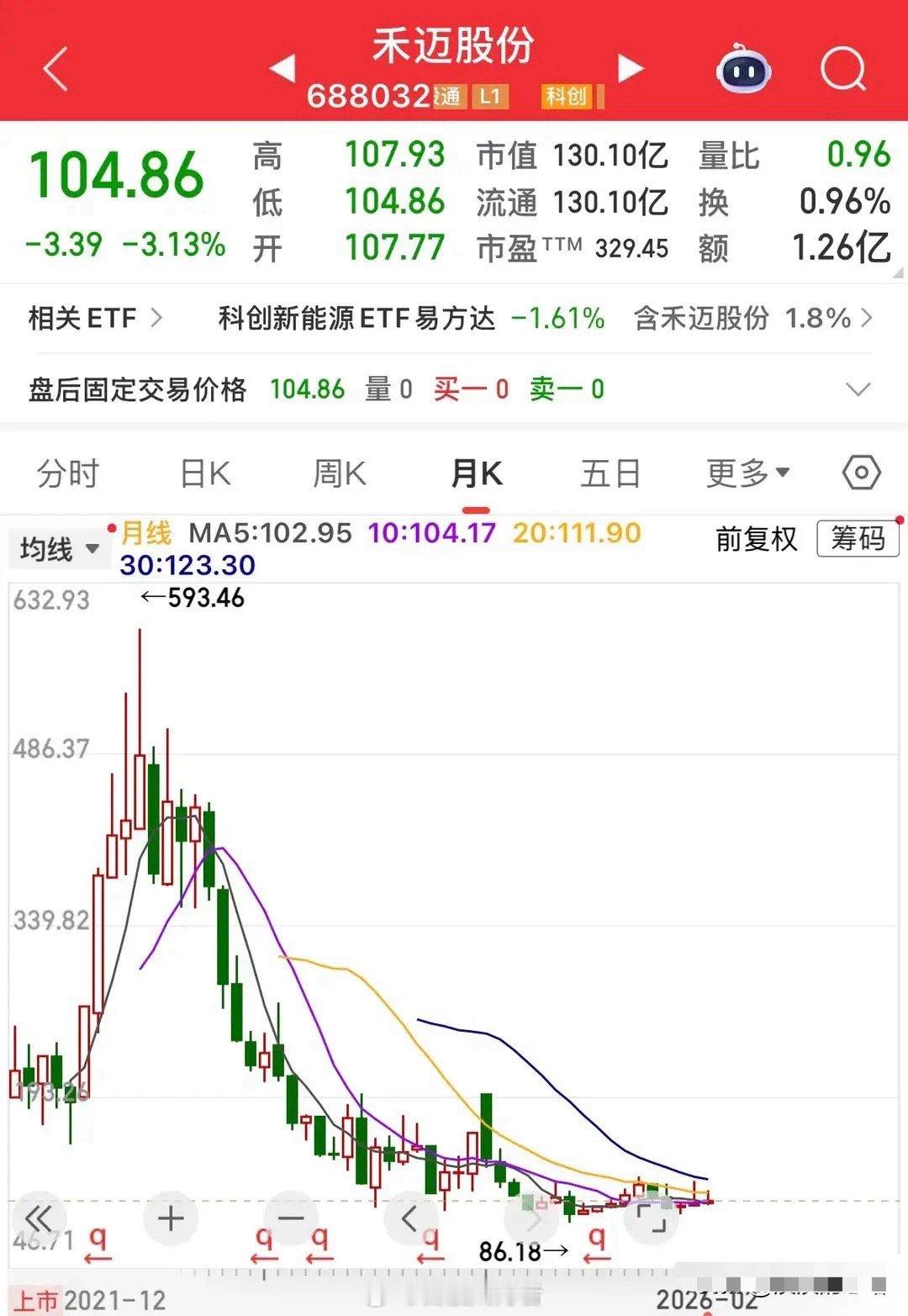 这10只股票中,发行价最高的是禾迈股份,2021年12月登陆科创板时,发行价高达557.8元。当年上市前,不少投资者担心它会首日破发,加上弃购比例较高,一度引发热议。不过上市后,它不仅没破发,未除权时股价还曾冲到1877.43元的高位。但如今,经过三次转赠股后,其股价已跌至104.86元,最低时甚至触及94元,较高点下跌83%,按发行价复权计算,破发幅度达32.82%。这家主营光伏设备微型逆变器的企业,目前市盈率仍高达329倍。