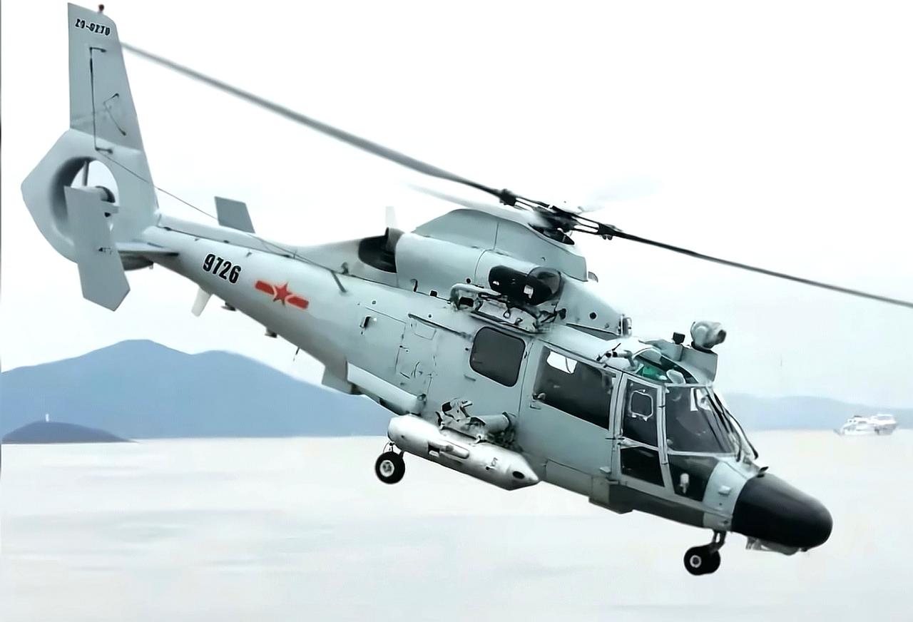 在短翼上挂载QJK-99式12.7毫米大口径航空机枪吊舱的空军直九直升机,这是一架搜救型直九,可以看到机身侧面的外置吊索,驾驶舱上部的搜救光电探头。外挂机枪,仅仅是在搜救活动中,针对地面轻步兵目标,提供一些基础火力。