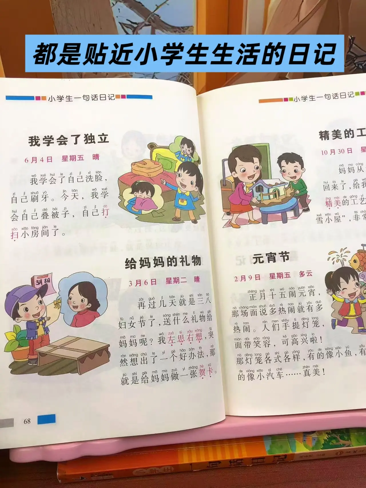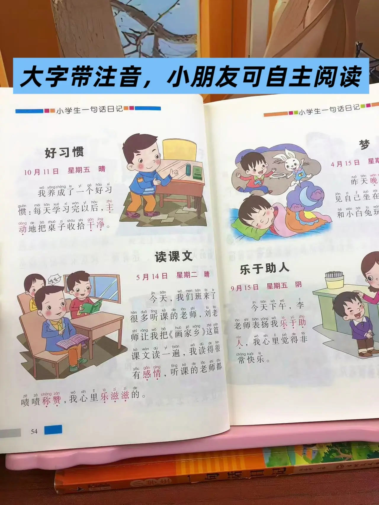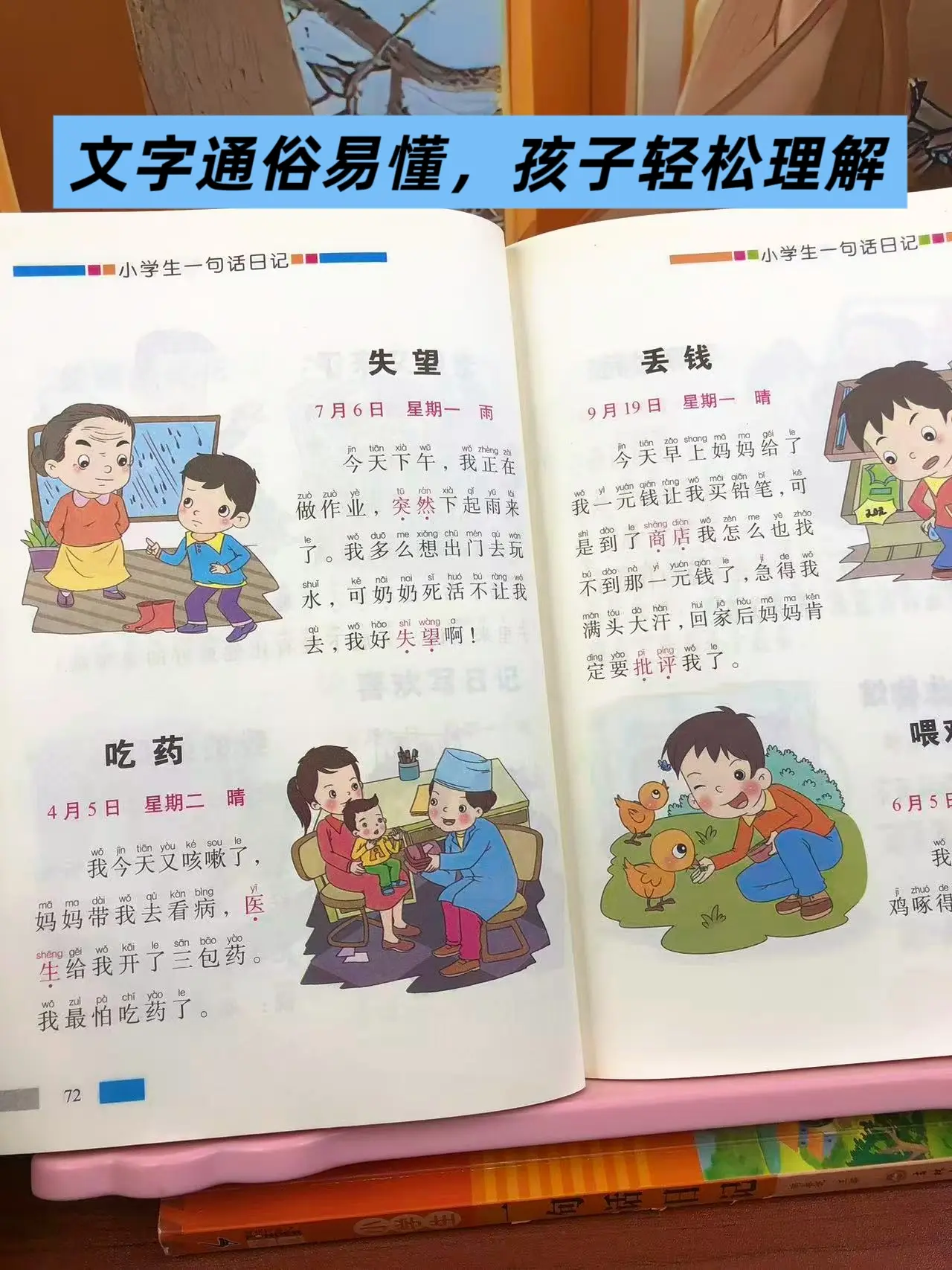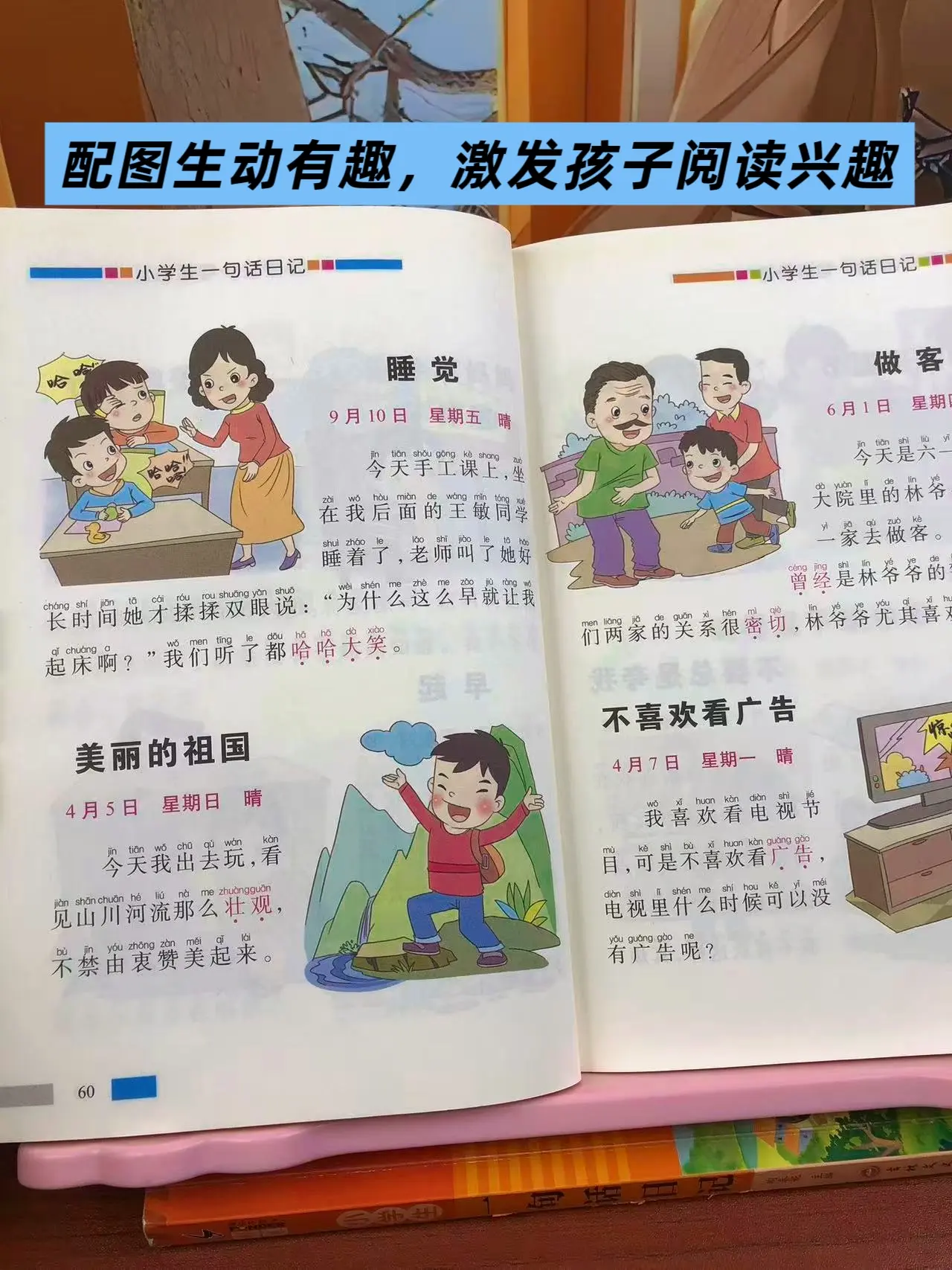 女儿一年级的时候,每天都两页一句话日记,积累写作素材,提升写作能力。