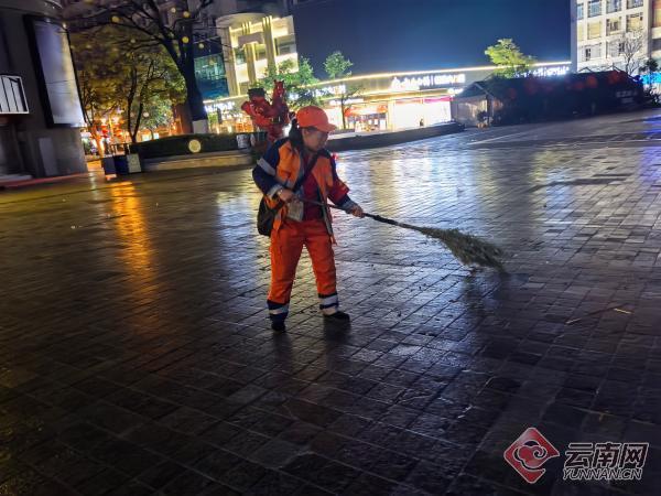 “南屏步行街是我们昆明的‘城市会客厅’,客人来了,客厅就得干净体面。大家再累都始终坚持,没人喊苦、没人掉队。过年嘛,大家都想干干净净的。我们能做的,就是把这份干净守好、护好。”昆明五华北控环境产业发展有限公司环卫工人曲跃美说。从事环卫工作8年,她连续8个除夕都坚守在岗位上,这片最热闹的街区,成了她最牵挂的责任区。从凌晨五点开始清扫,到七点左右完成第一遍普扫,天边泛起鱼肚白,曲跃美的额头沁出细密的汗珠。