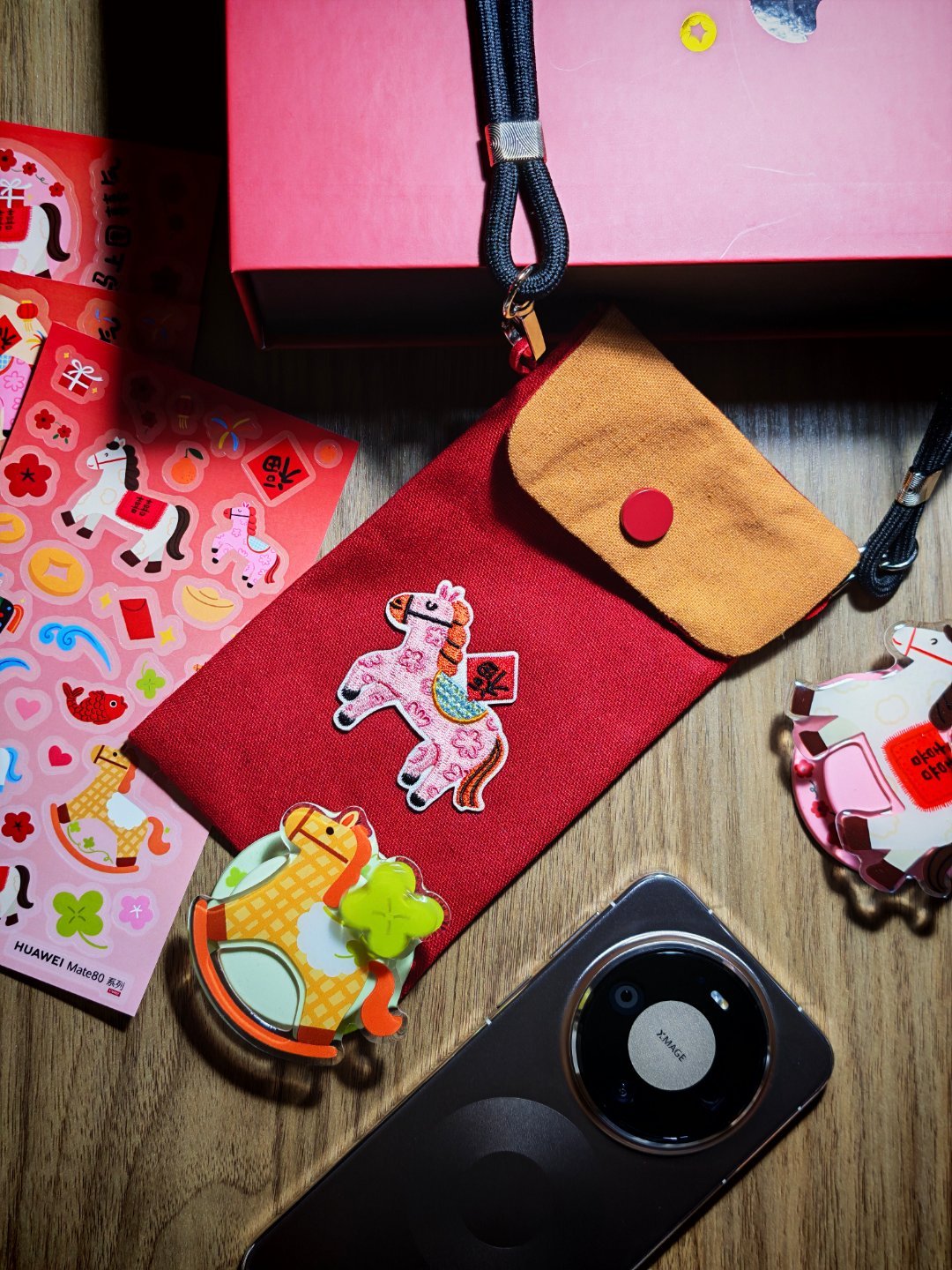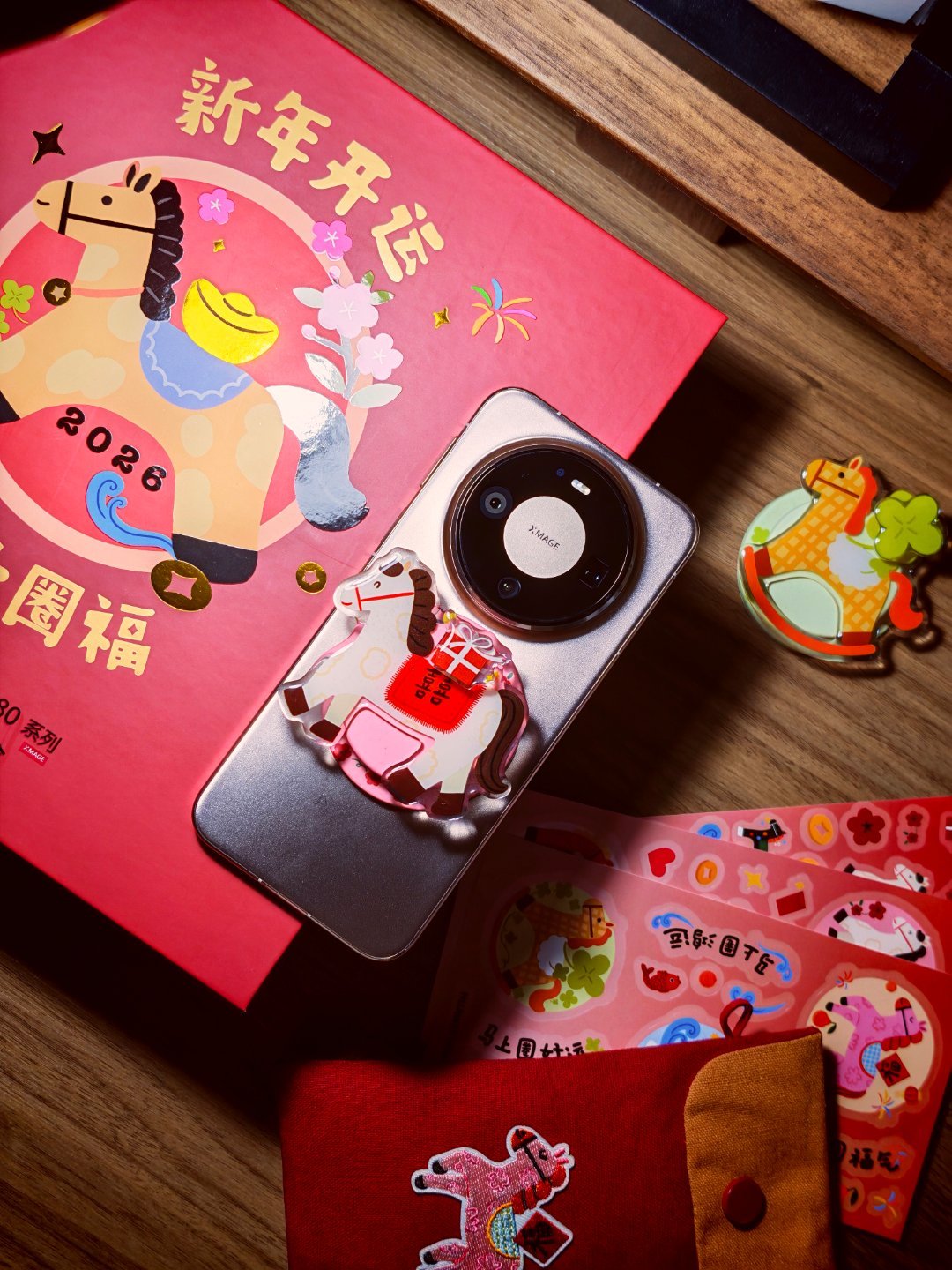 新年开运,马上好运。收到了一份Mate80系列的马年限定周边礼盒。很喜庆精致好玩,马上福袋,气囊支架和贴纸,装饰起来。年初三,祝大家马上有鸿运