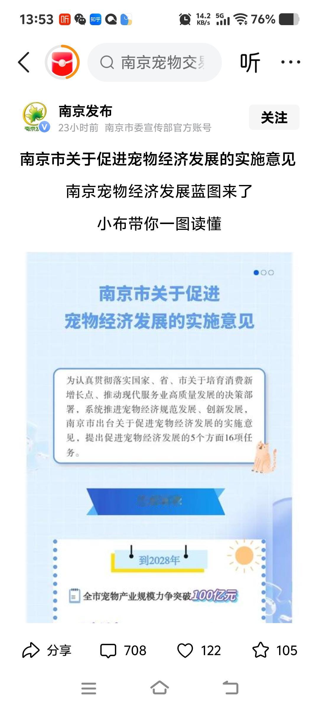 六朝古都成为猫狗天堂,是否好的变化? 南京的媒体报道,春节前,南京宠物消费火爆。宠物美容店门庭若市,猫狗排队等待洗澡美容。年货市场,宠物年货礼盒花样繁多,有年夜饭、压岁钱,颇具仪式感。南京还设立了“宠物幼儿园”,里面配备“包间”,有开阔的大草坪。“还有专业的训练师,带狗狗游戏、社交以及学习一些狗狗礼仪”。 据调查,目前,南京市宠物总数约有150万只。照南京市发展宠物经济的热情度和迫切感,在不久的将来,南京市将有大量的猫狗不断产仔,同时有无数异地猫狗及其主人慕名前往。届时,猫狗数量有可能不断翻番增长,成为超过人类的最主要住户。 不知道,南京市制定促进宠物发展的实施意见,大力宣传和推动宠物经济,让六朝古都变身猫狗天堂,究竟之前对发展宠物经济的利弊得失,尤其宠物经济在人文意义上的副作用,做没做过严密的科学论证,是否取得了可靠的依据?