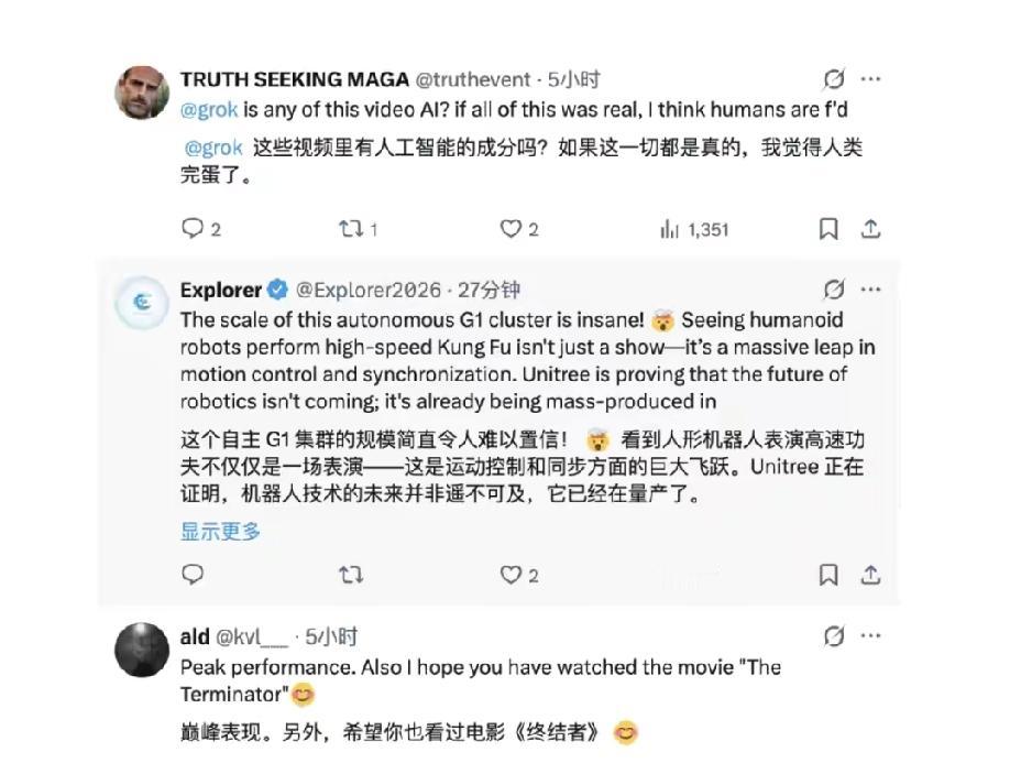 今年春晚上的机器人表演直接炸场,让全世界都惊掉了下巴!推特上,几乎所有外国人都在问“这是真的吗”,欧美网友更是逐帧研究视频,评论区吵得不可开交,一派惊叹中国机器人技术牛,另一派死活不信,又是放大画面找穿帮,又是研究关节轨迹,甚至扒拉像素点找AI痕迹。 其实他们的质疑恰恰证明咱技术过硬。春晚舞台数亿人盯着,机器人还能零失误表演,动作自然、配合默契,这实力没话说。想当年,日本索尼的伴舞机器人登台,中国的人形机器人还在实验室。如今,宇树机器人成了春晚主角,轮到美国高科技公司琢磨“弯道超车”啦!