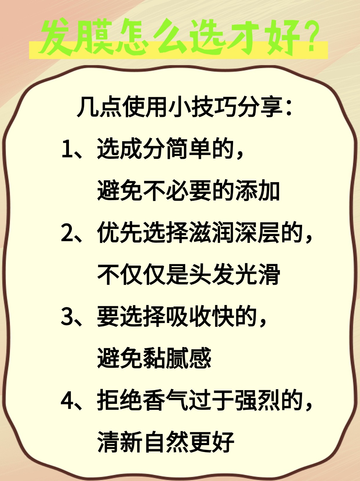 毛躁干枯该用什么发膜,想找平价款的朋友特别多,今天先科普发膜会不会让头发变油,以及涂多了该怎么补救。发膜本身不会致油,变油大多是涂抹到头皮、清洗不干净或使用过于频繁导致的。不小心涂多了,用温水多冲洗一遍,轻柔发丝就能缓解。油头发质要选质地清爽的无硅油款,避开厚重滋润型。发膜除了护理头发,少量未变质的还能用来擦拭皮具、顺滑拉链,不过不建议再用于头发。干枯、毛躁、烫染受损发质都适合用发膜,平价区间也有不少能满足基础修护需求的款式。下面是我总结的平价发膜选购避雷技巧,都是实测得出的干货,建议先点赞收藏。