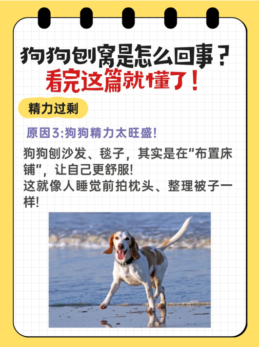 特别是换新窝时,这种行为会更明显,这是狗狗在"个性化定制"自己的小天地呢!