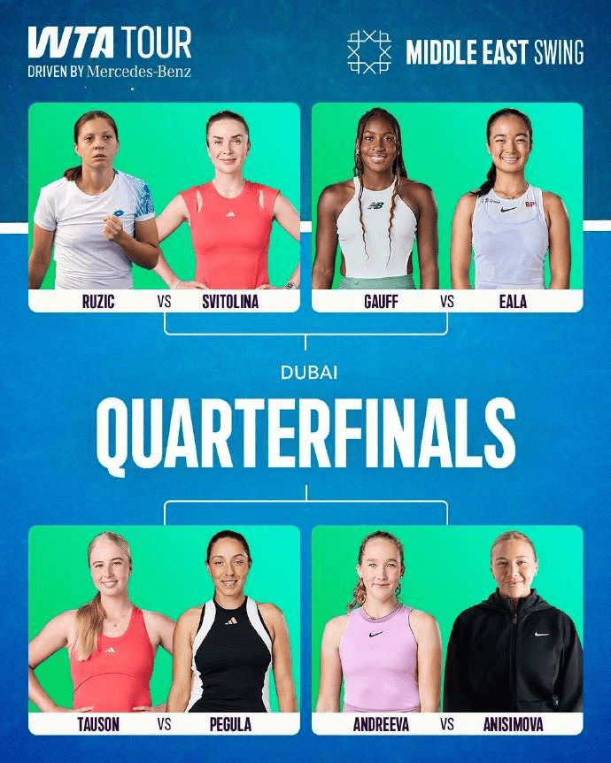 虎扑02月19日讯北京时间今天凌晨,WTA1000迪拜站结束女单第三轮争夺。高芙、阿尼西莫娃和卫冕冠军米拉-安德烈耶娃晋级到八强。