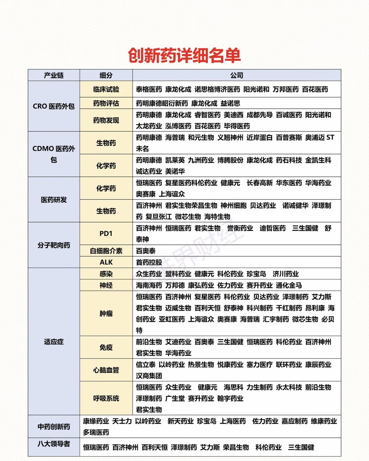 创新药行业前景一片光明!2024年中国创新药市场规模超1.13万亿元,预计到2030年接近2.3万亿元。政策也大力支持,2025年政府工作报告提出健全价格机制、制定创新药目录。 领军企业中,恒瑞医药是国内化学制药龙头,研发投入高,已上市14款创新药,24个在研项目进入临床。贝达药业是小分子靶向药领军者,核心产品埃克替尼是首个自主研发肺癌靶向药。复星医药以“自主研发+License - in”驱动,旗下奕凯达已商业化。荣昌生物是ADC赛道头部企业,维迪西妥单抗授权合作金额创纪录。创新药行业未来可期!
