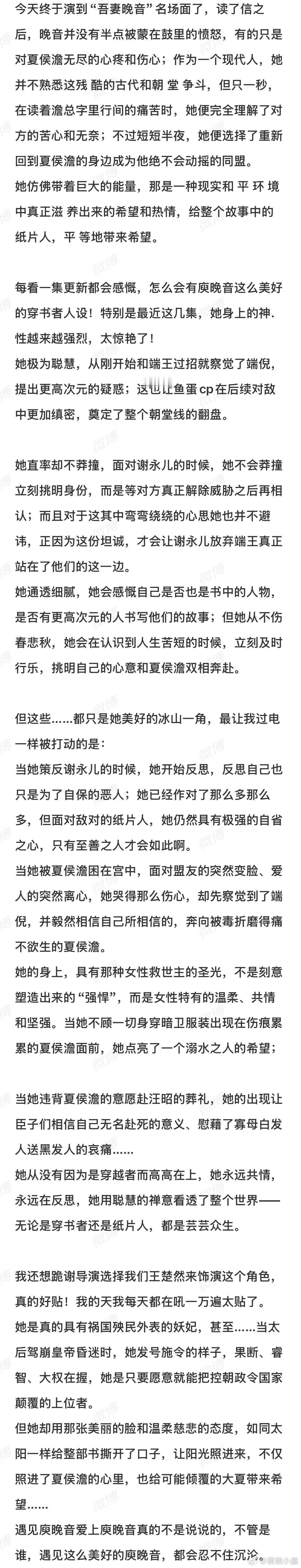 我确定我爱上了王楚然 王楚然对庾晚音的演绎就像一场细腻的情感盛宴。她把角色内心的