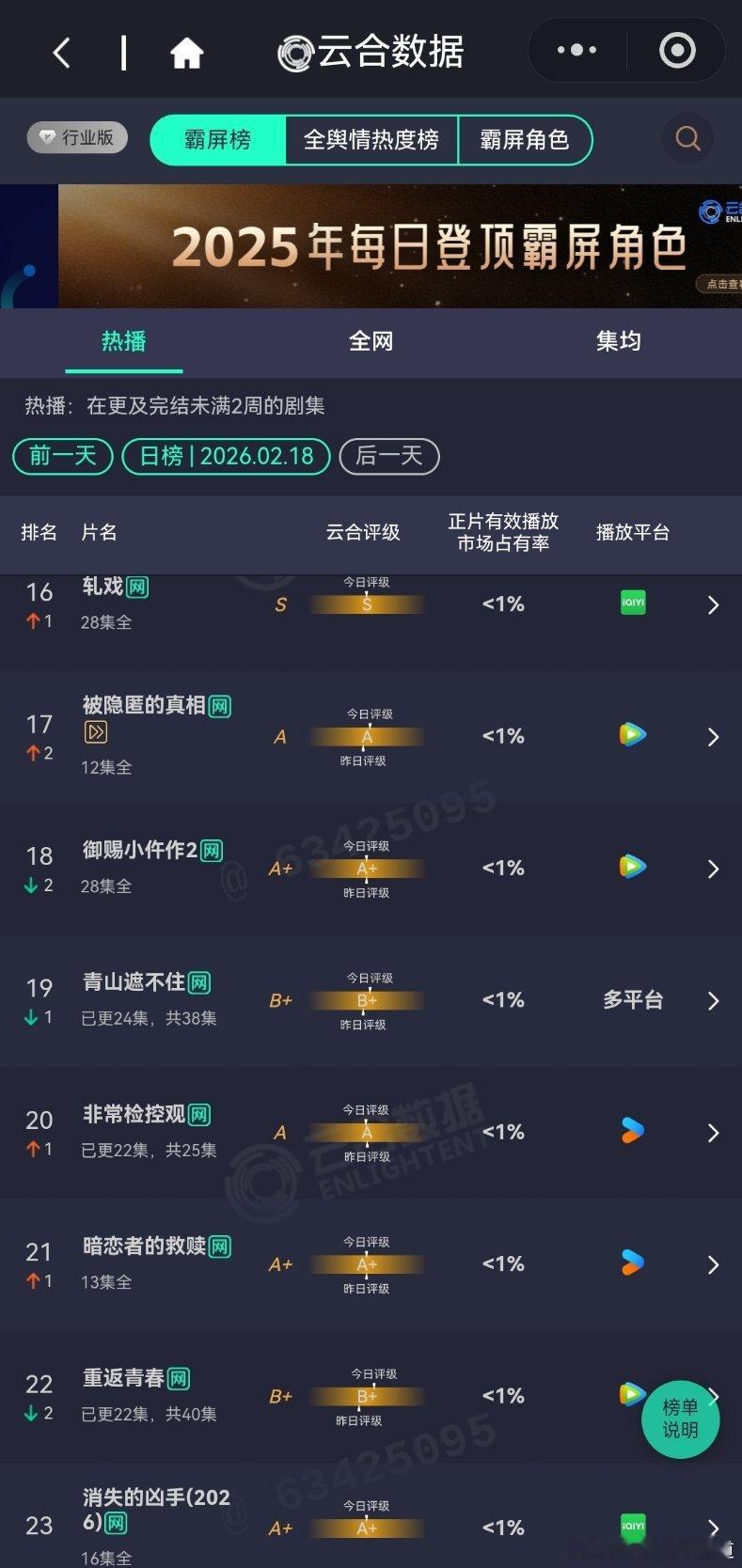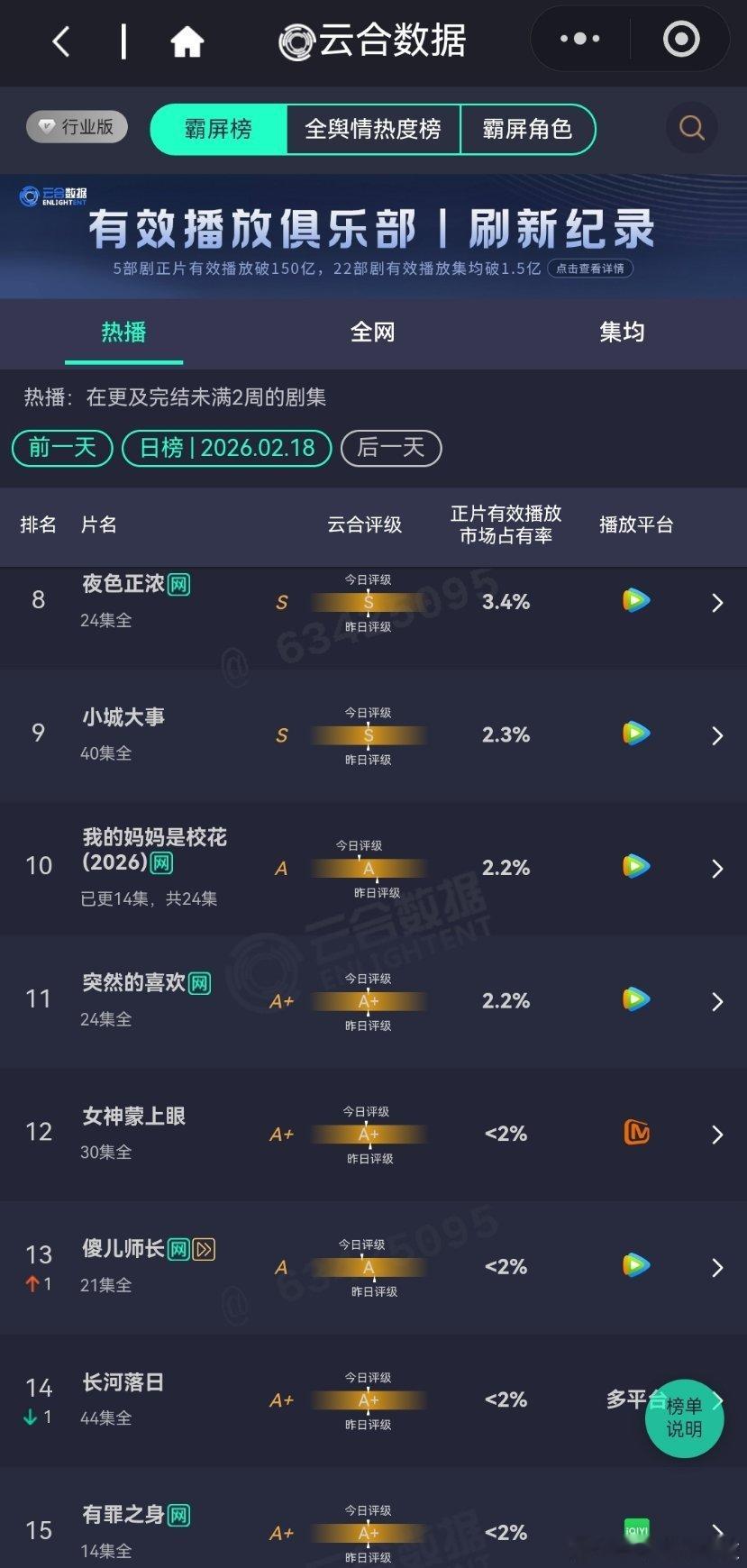 2月18日云合播放占比云合 成何体统云合19.8%登顶了,算是开年小黑马唐宫奇案17.6%生命树11.7%太平年10.2%乡村爱情18 8%评级大幅上升