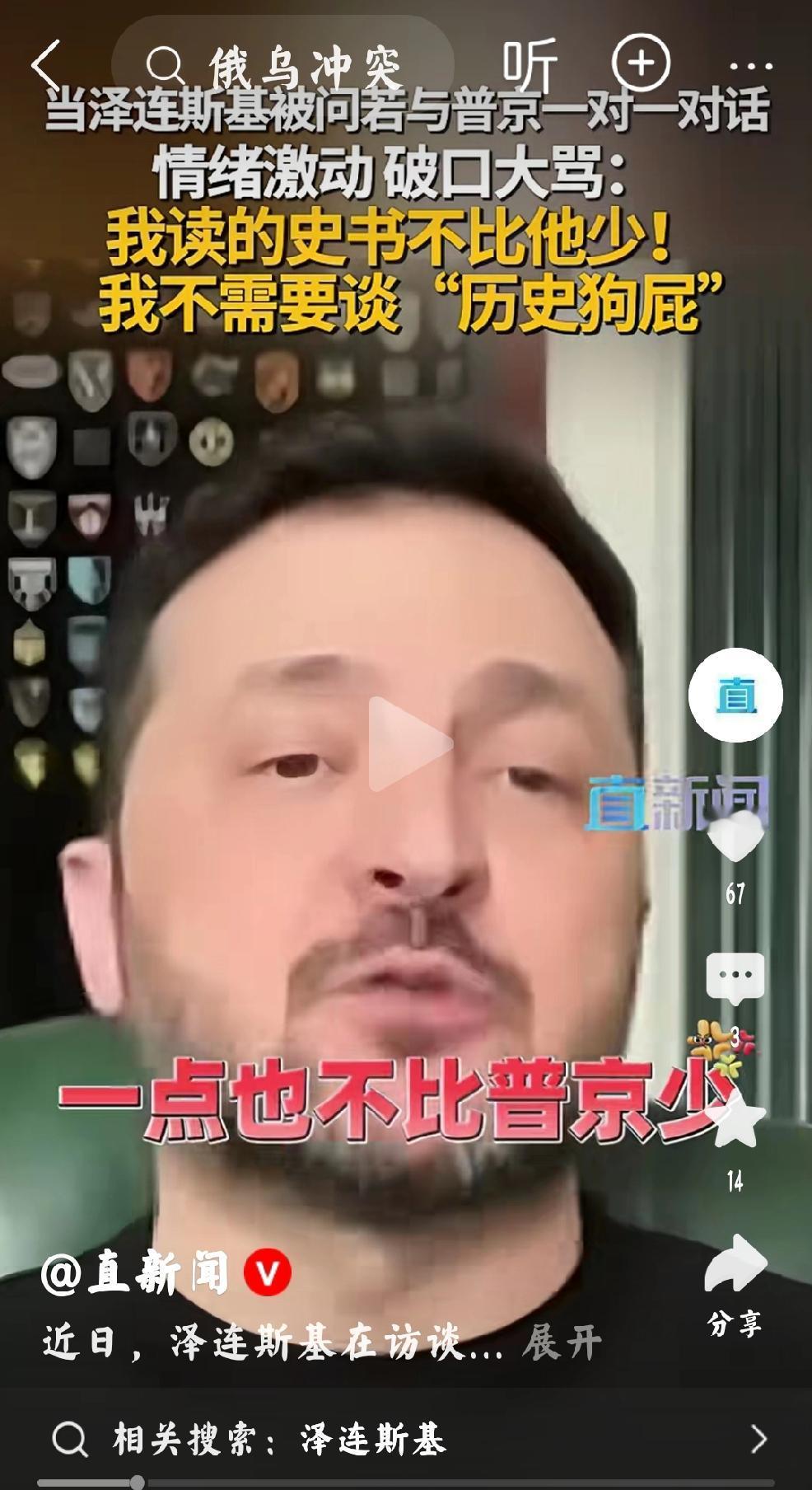 2月19日,直新闻报道,乌克兰总统泽连斯基被问,“假如与普京一对一对话”时,突发泽连斯基,情绪崩溃,破口大骂“我读的史书不比他少,我不需要历史狗屁” 个人认为:这就是堂堂一国之元首,这就是美国总统和欧洲驻国,鼎力支持的象征着美式民主与自由的代表人物。 每回俄乌冲突进行到,乌克兰即将失败,就会提出和平谈判要求,一边谈判一边要求军援,否则就会说美国和欧盟违背了美式自由和民主,就会向美国与欧洲化缘的小可怜人物。 泽连斯基开创了一代表演式谎言特征的职业政客风格。个人认为:泽连斯基在先,高市早苗在后,都是把本国埋葬,民族消亡的一等一高手。