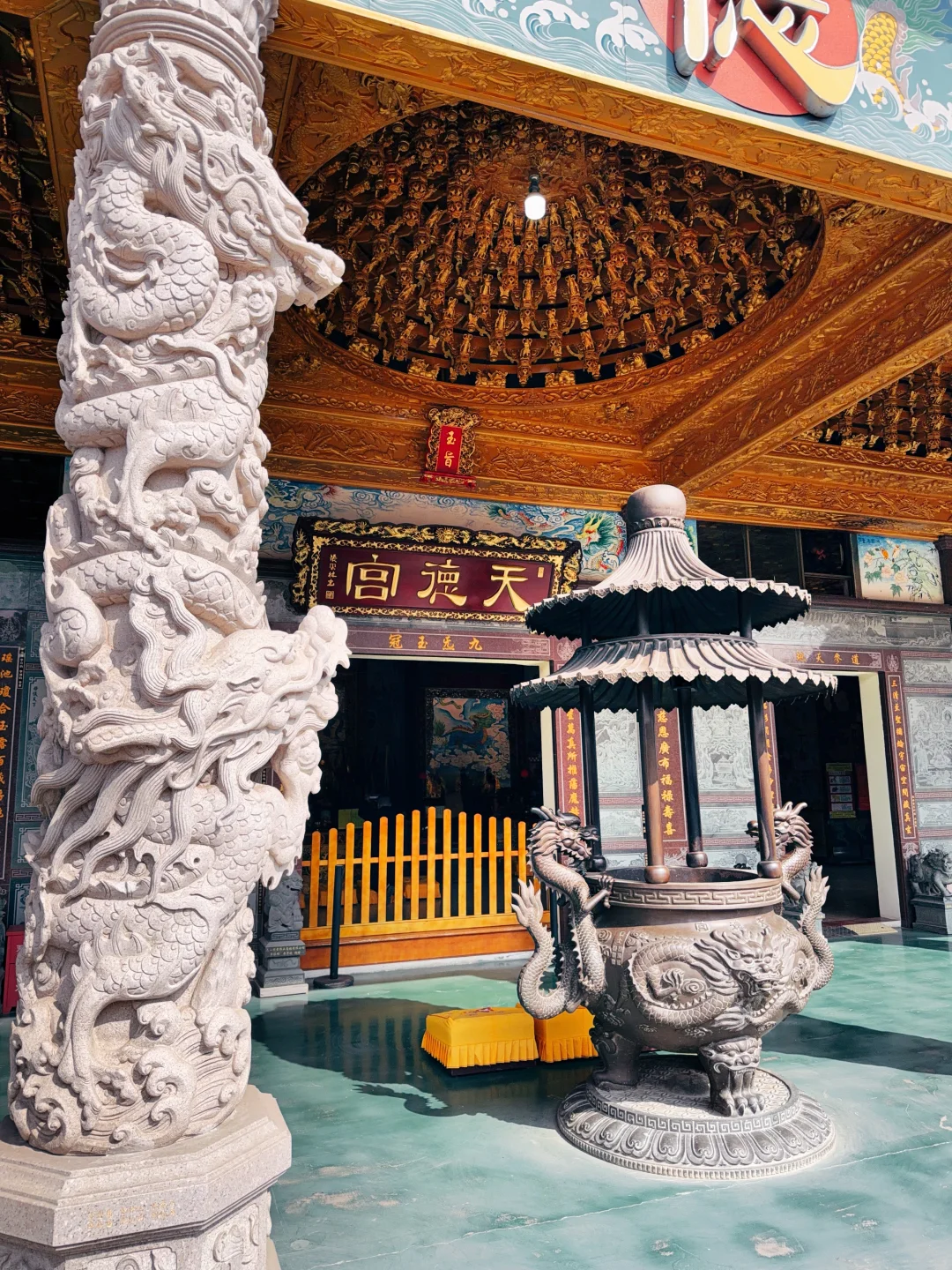 [拔草R]天德宫并非传统江南道观,而是融合了闽台宫庙的建筑特色,以鎏金、彩绘、龙纹雕刻为主要装饰语言。