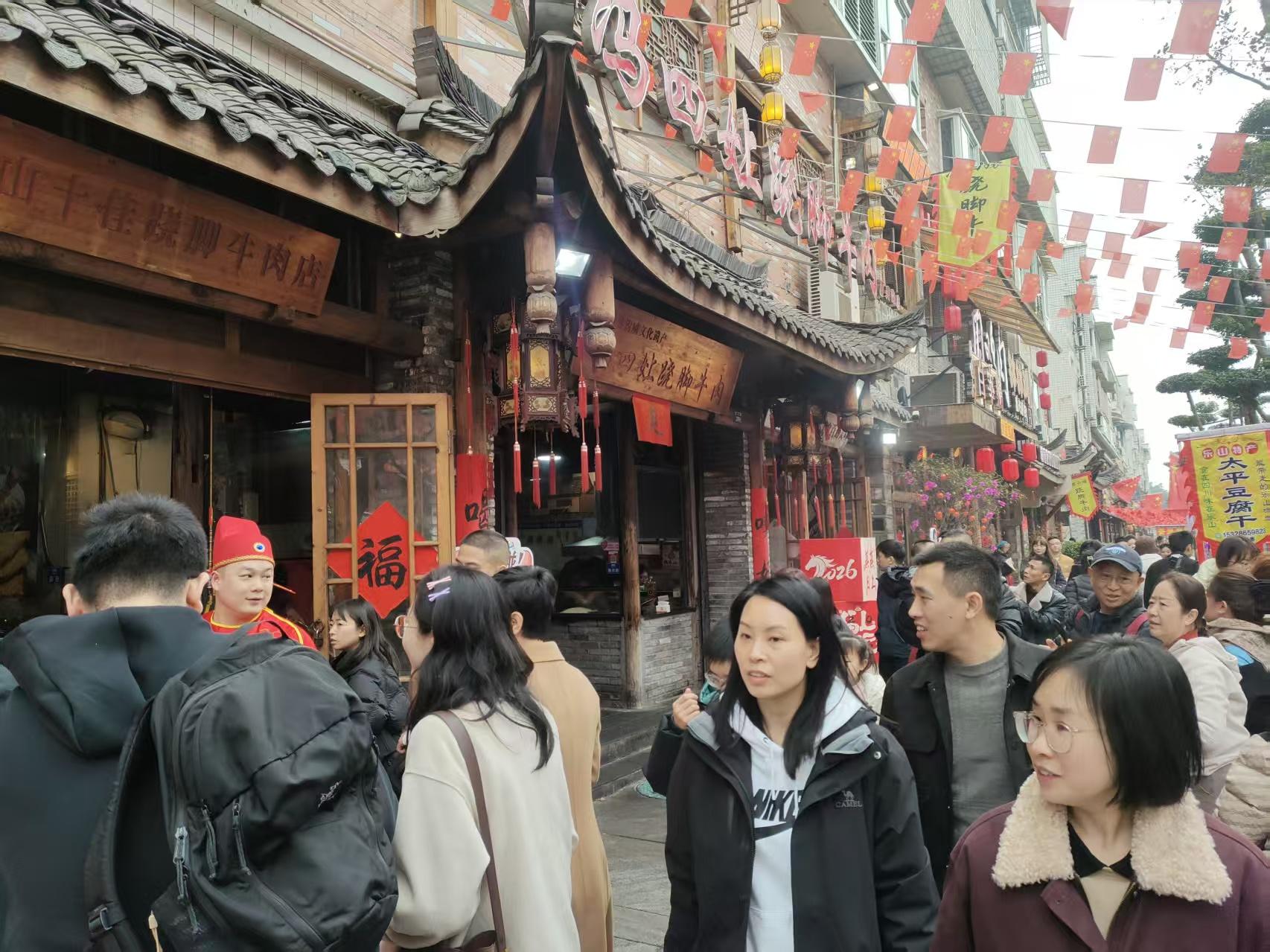 春节假期,游客云集乐山,乐山城区各大美食街更吸引众多游人纷纷“打卡”。看美景、品美食,秩序井然,游人、市民大多文明旅游、文明就餐、爱护城市环境的同时,更扮靓了城市最美的“年味烟火”。