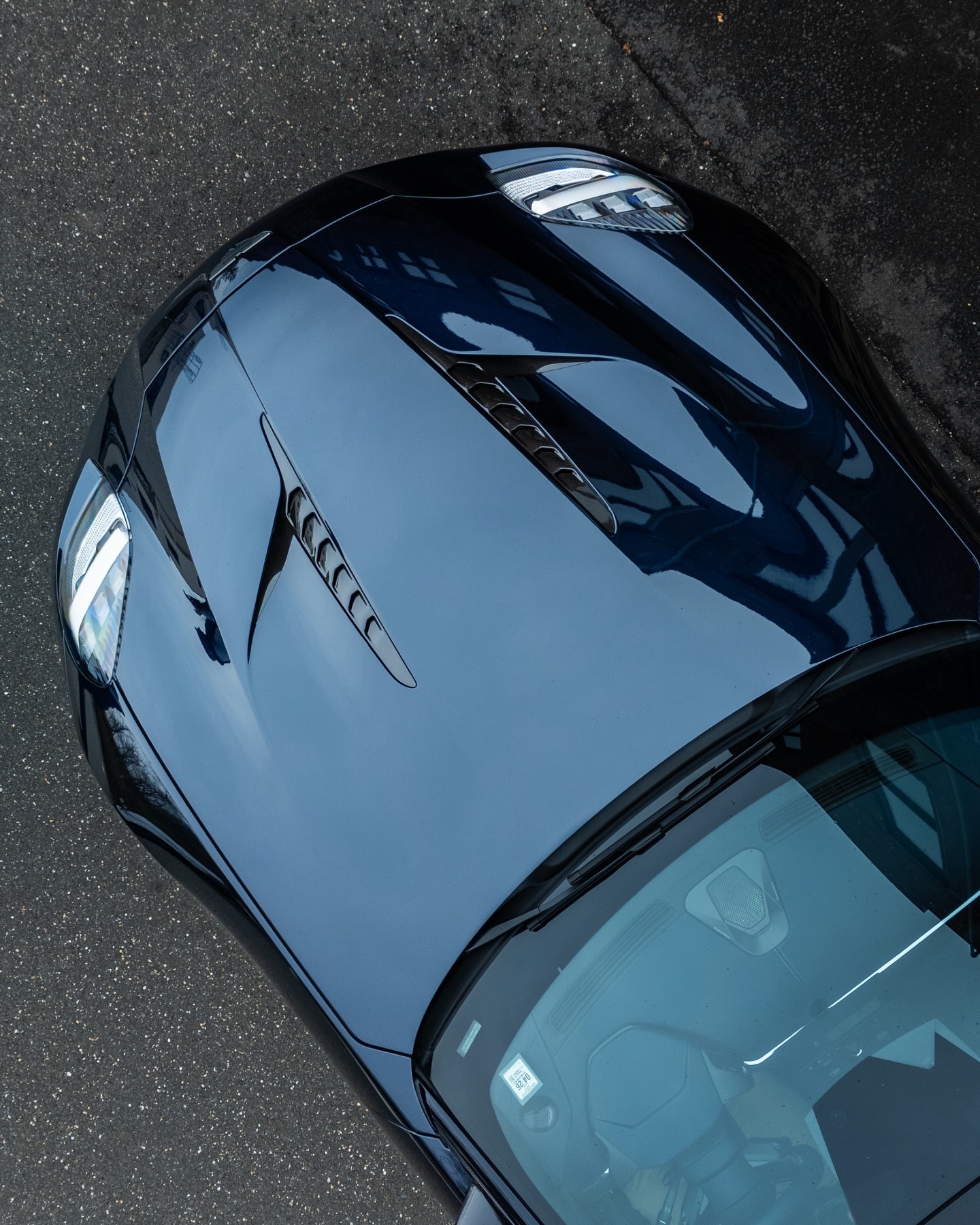 车身涂有群青黑色,有对比色的条纹环绕在下方气动部件周围,与内饰缝合线相匹配。