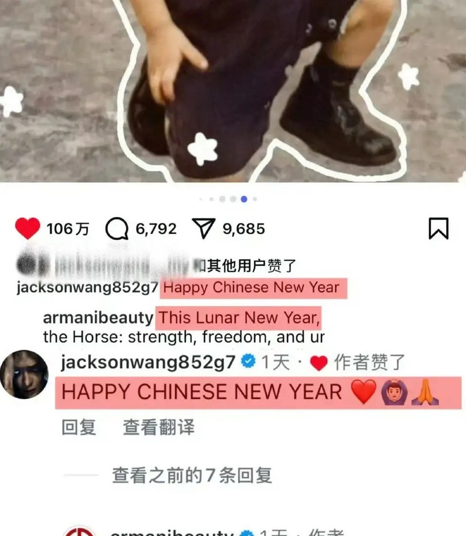 王嘉尔主动纠正阿玛尼官方,将Lunar New Year改回Chinese New Year,却被部分人说他事多、卖人设。结合背景一看便知:迪拜音乐节上,蔡徐坤明确用Chinese New Year拜年,紧随出场的权志龙却刻意强调Lunar New Year。春节是中国申遗的传统节日,正本清源不是矫情,谁在淡化文化归属、谁在守护文化根脉,一目了然。