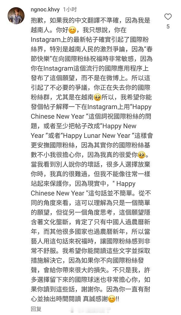 梓渝发Chinese New Year也被冲了…越南的网友怎么对别人家的传统文化