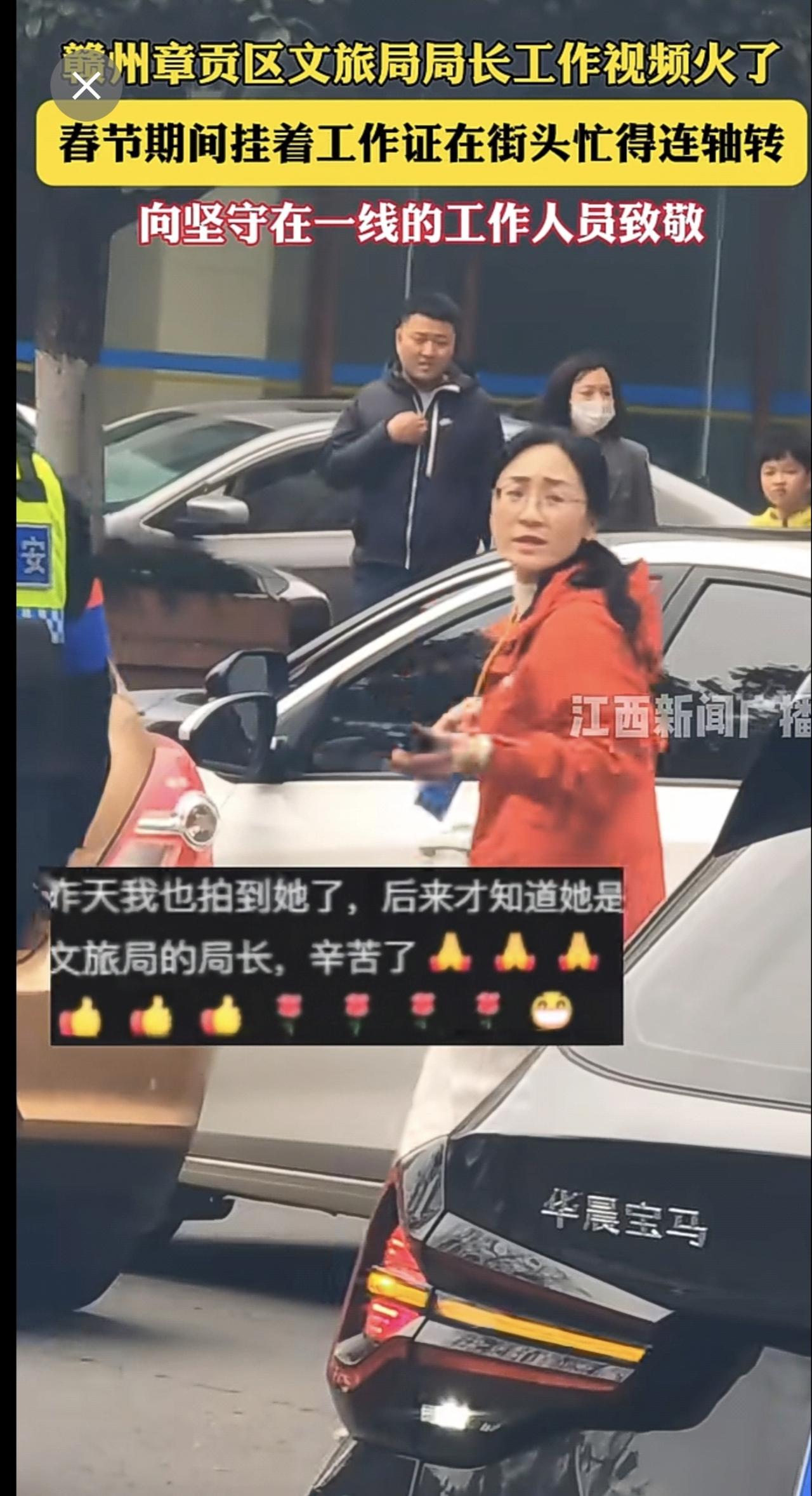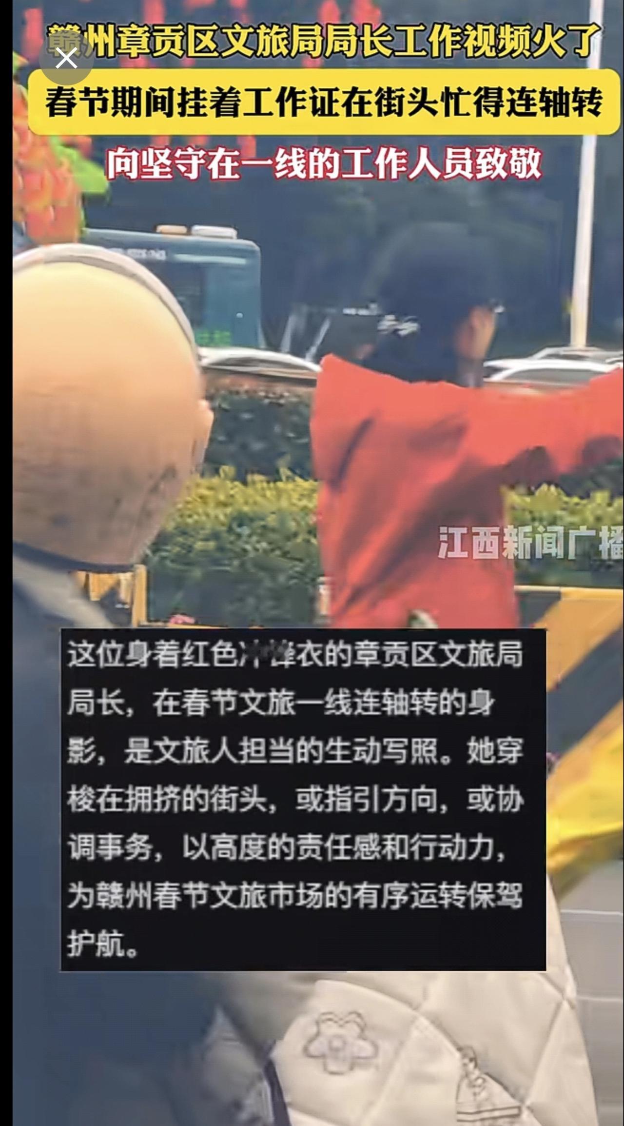赣州章贡区文旅局局长工作视频火了,春节期间挂着工作证在街头忙得连轴转,向坚守在一