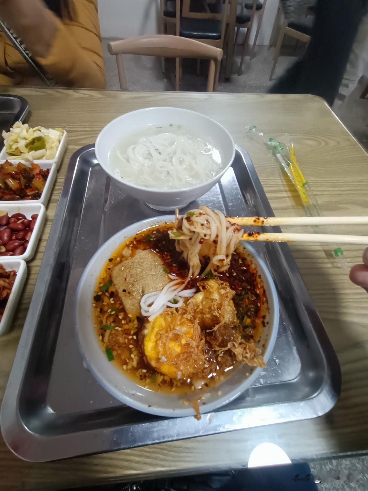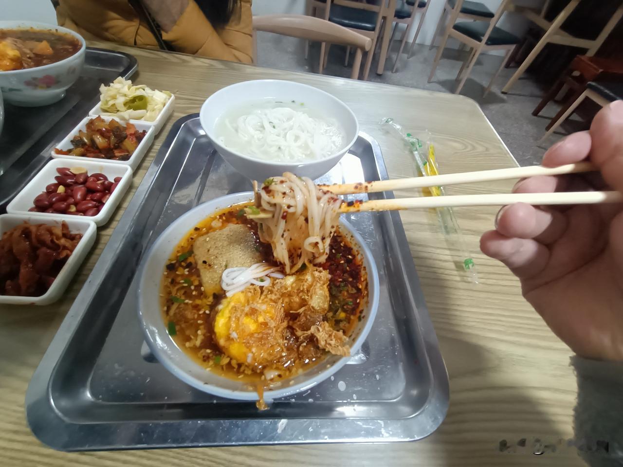 大年初三,我们一行人终于在巍山古城品尝到了过江饵丝。这是巍山独有的吃法,饵丝分碗盛放、烫着吃,据说它是南诏烟火气的典型代表,即便在节假日游客激增,人们排上一小时队也要尝尝,是备受欢迎的特色美食之一。 这种饵丝正确的吃法是:一碗清汤饵丝搭配一碗浓鲜扒肉汤,吃的时候把饵丝夹进肉汤里“过江”,再送入口中,颇有一番饵丝“过江”的意趣。 关于它的起源还有一段传说:一说南诏三公主为保持风味、方便携带,首创分碗吃法;也有说法称是模仿将士渡江的动作。 据介绍,饵丝选用本地黄皮谷米,经过泡、蒸、舂、压、切丝等工序制成,米香浓郁、筋道弹牙。扒肉则采用土猪肘子或五花肉,用文火慢炖整夜,酥烂却不油腻,汤汁浓郁醇厚。 在这里,一套标准的过江饵丝包含:四碟小菜(腌藠头、萝卜丝、泡菜、花生米),还有油辣子、花椒油、蒜汁、葱花。 这里还有一套正宗吃法(灵魂步骤) 1. 让饵丝在清汤碗里保持温软,不坨。 2. 夹一筷饵丝,浸入扒肉汤中烫1 - 2秒(“过江”)。 3. 让饵丝裹满汤汁,搭配小菜,加点辣子,一口嗦完。 4. 反复“过江”,越吃越入味。 最后温馨提示:这家店很火爆,节假日游客众多,慕名前来品尝的人不在少数。据服务员介绍,他们早上七点半就开始营业,早点去人少,品尝过程会比较顺畅。千万别在饭点去,人太多,排队时间长,餐位也难找。务必慎重!巍山旅游 过江饵丝 巍山古城美食街 大理巍山