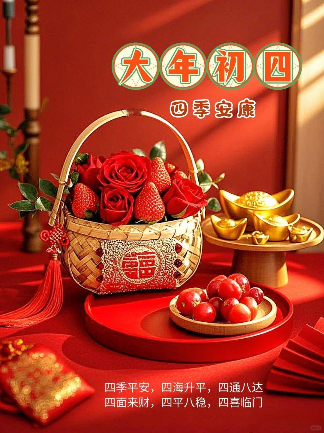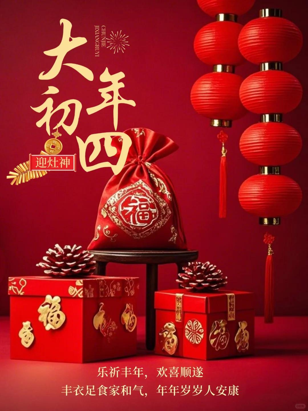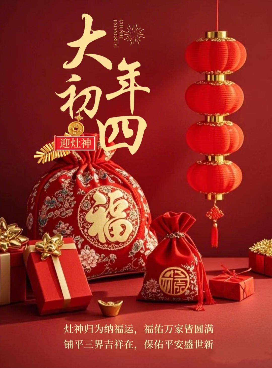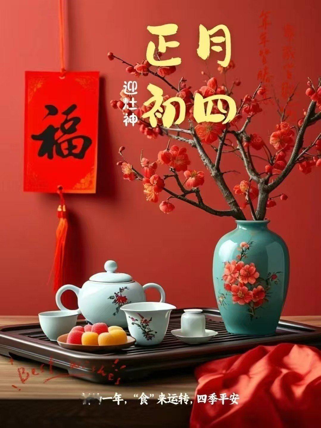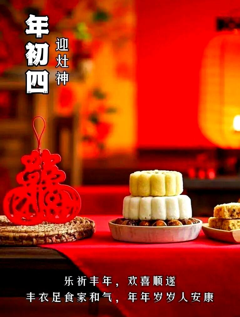 大年初四迎竈神, 四季快樂人安康, 春風送暖冬雪融, 歲歲平安接吉祥。 早上好!