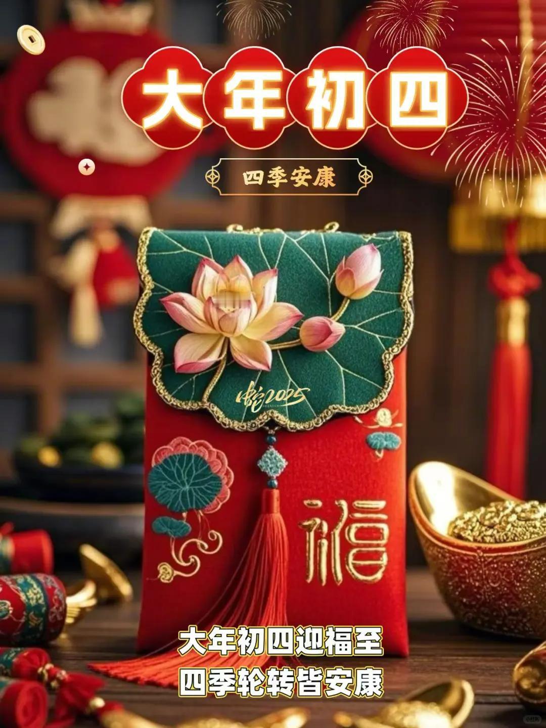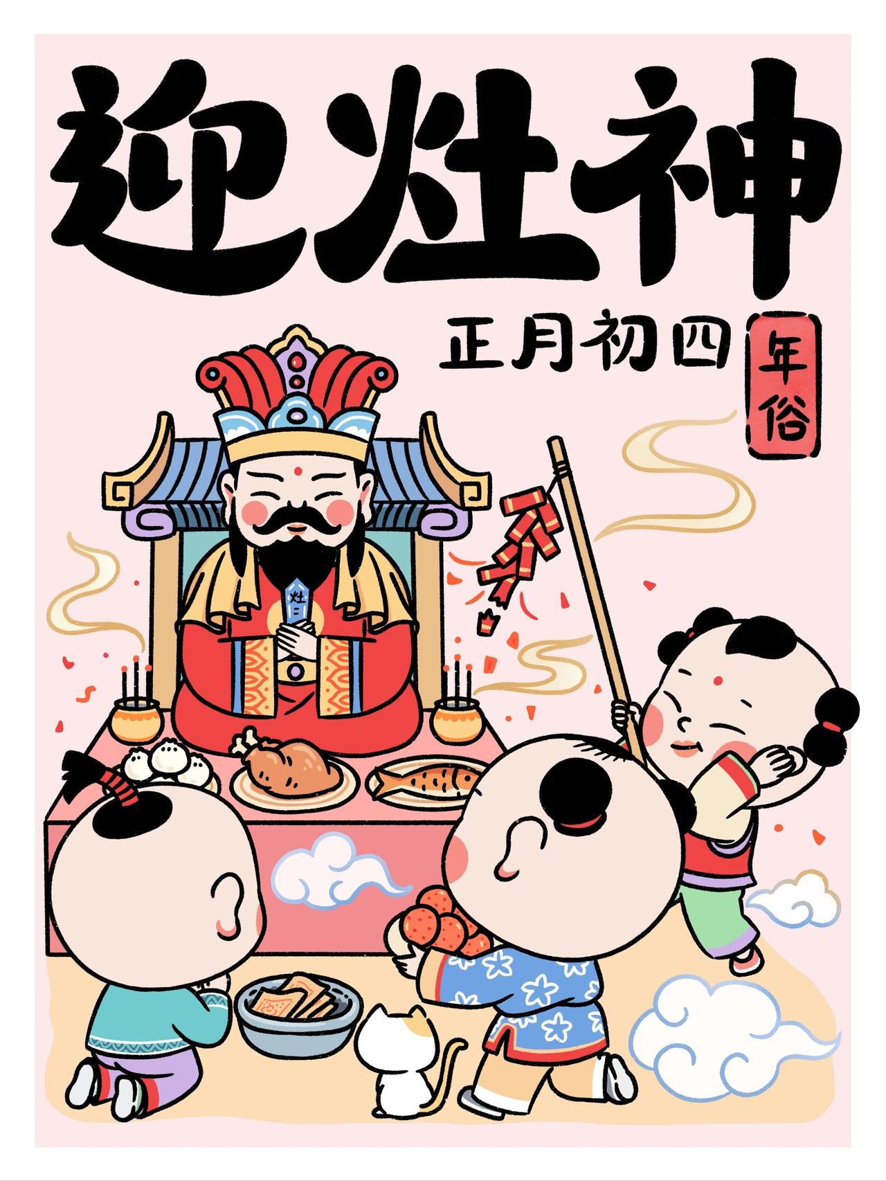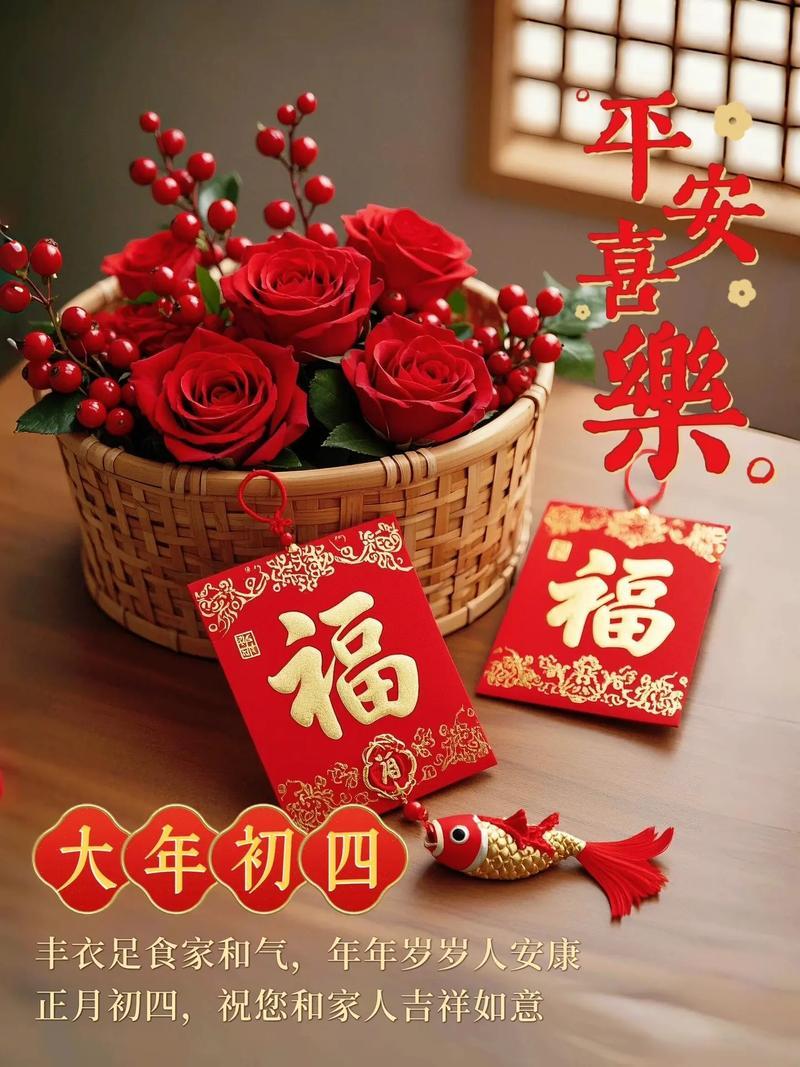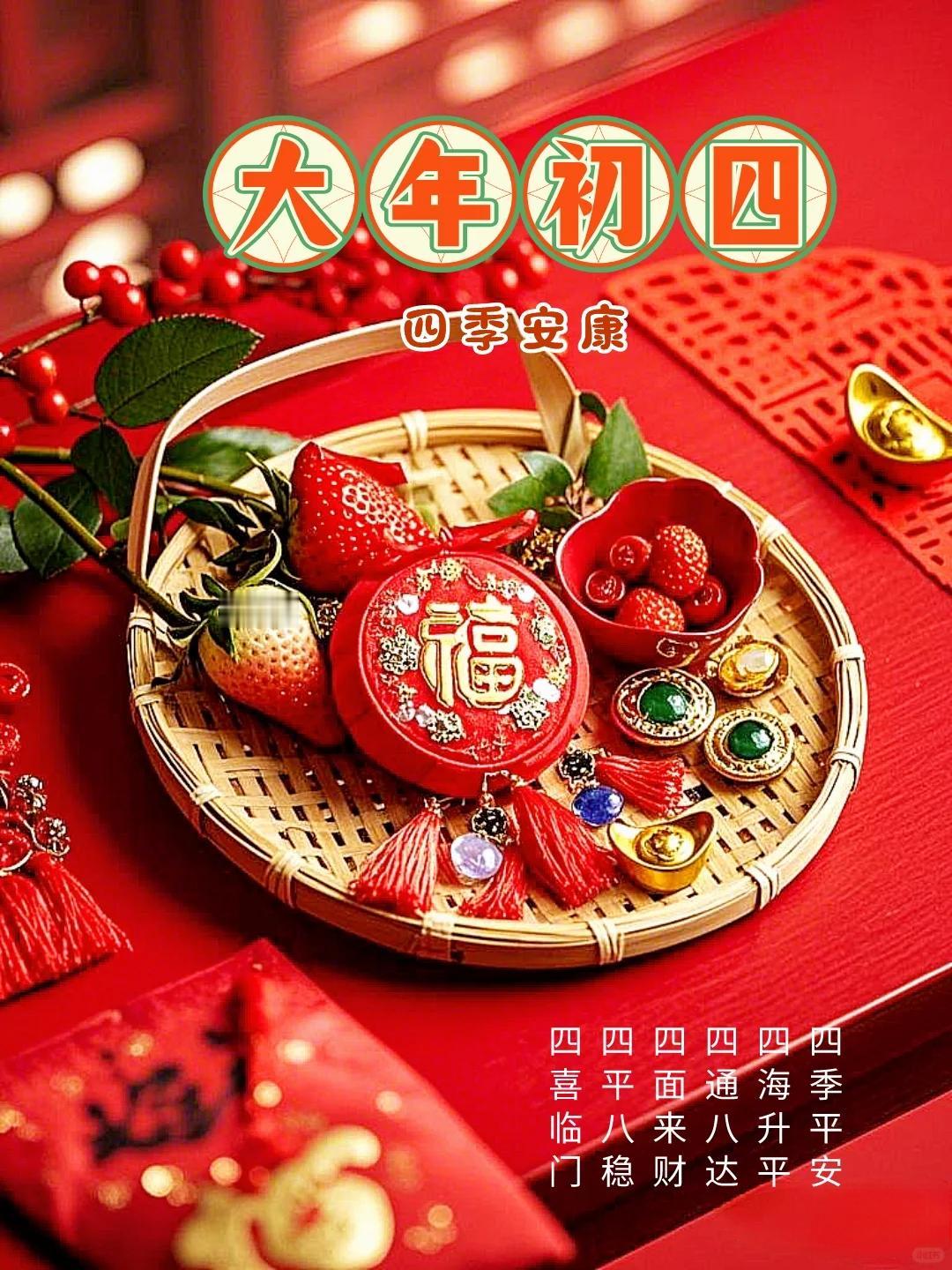 大年初四迎竈神, 四季快樂人安康, 春風送暖冬雪融, 歲歲平安接吉祥。 早上好!