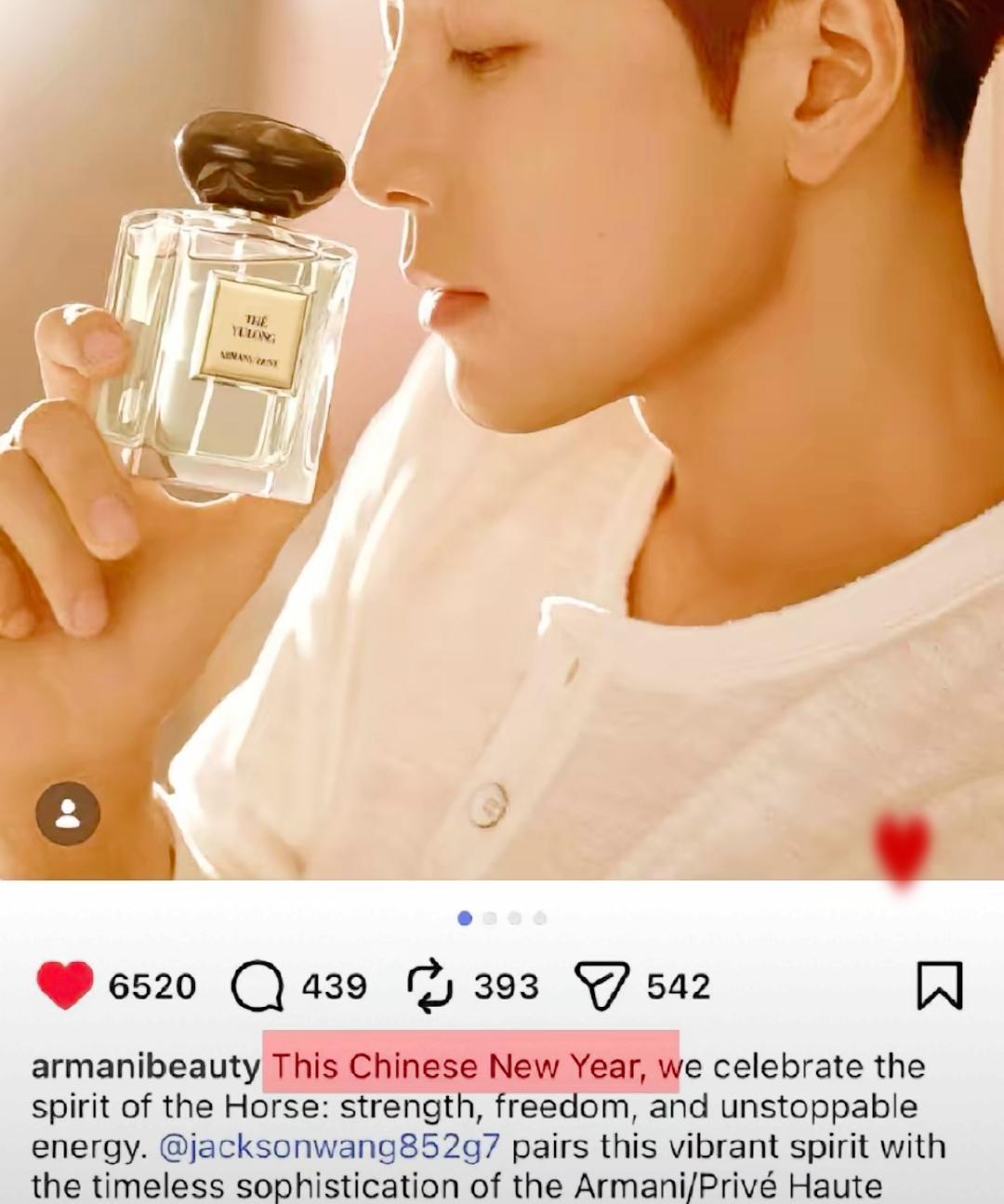 王嘉尔硬刚阿玛尼:拿我代言,就必须认“Chinese New Year” 顶奢想模糊春节属性?王嘉尔直接教做人! 2月19日,阿玛尼海外账号用王嘉尔照片发新春祝福,却刻意用“Lunar New Year”淡化中国根源。身为全球代言人,他没搞私下沟通,直接在评论区撂下硬话:“Happy Chinese New Year!用我照片,请说Chinese New Year”。 一句话,顶奢秒改文案!这不是明星耍大牌,是文化底线不能让。流量面前,太多人选择沉默,王嘉尔却用行动证明:代言人不是品牌的“提线木偶”,更是文化的“守门人”。 从科切拉披国旗到红毯绣“中国”,他从不让爱国停留在嘴上。这次硬刚,既是给品牌立规矩,更是向世界宣告:春节的根在中国,容不得半点模糊!这才是中国顶流该有的底气与锋芒!王嘉尔 ​​