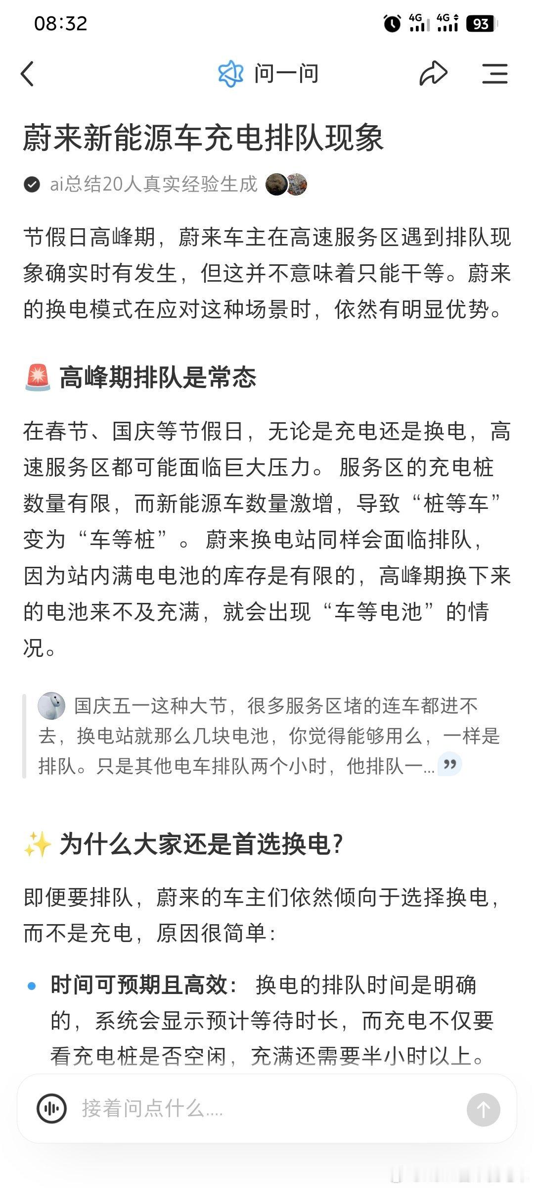 来自小红书AI的总结,高峰期充电和换电排队是正常现象,但是换电依然是最佳方案的基