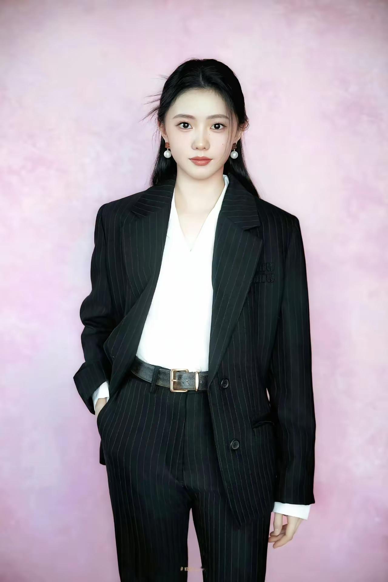 刘浩存的黑色条纹西装搭配简直绝了,职场飒爽风直接拉满。 她那套黑色细条纹西装套装,宽松版型随性大气。内搭简约白衬衫,经典干练。同色系条纹长裤垂坠感十足,修饰腿型效果超棒。系上一条棕色皮带,整体造型感瞬间提升。珍珠耳环更是点睛之笔,给干练的穿搭增添了一丝温柔气质,刚柔并济。 想象一下,在商务会议或者日常办公中,穿着这样一套搭配,气场直接两米八。宝子们,这谁能不爱啊!