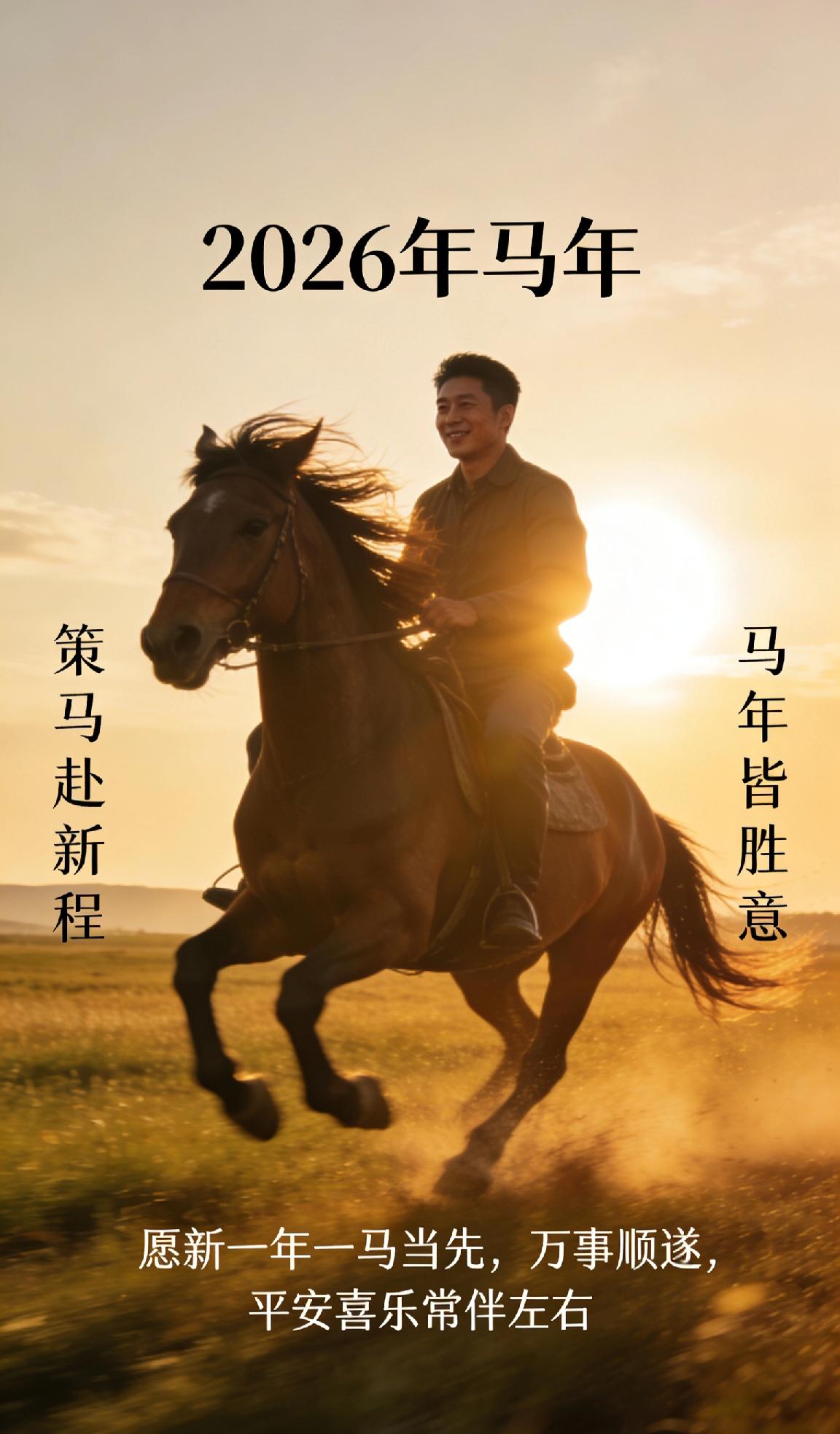 简短又有朝气,愿新一年一马当先,万事顺遂,平安喜乐常伴左右🐎马年大吉 一马当先 万事胜意
