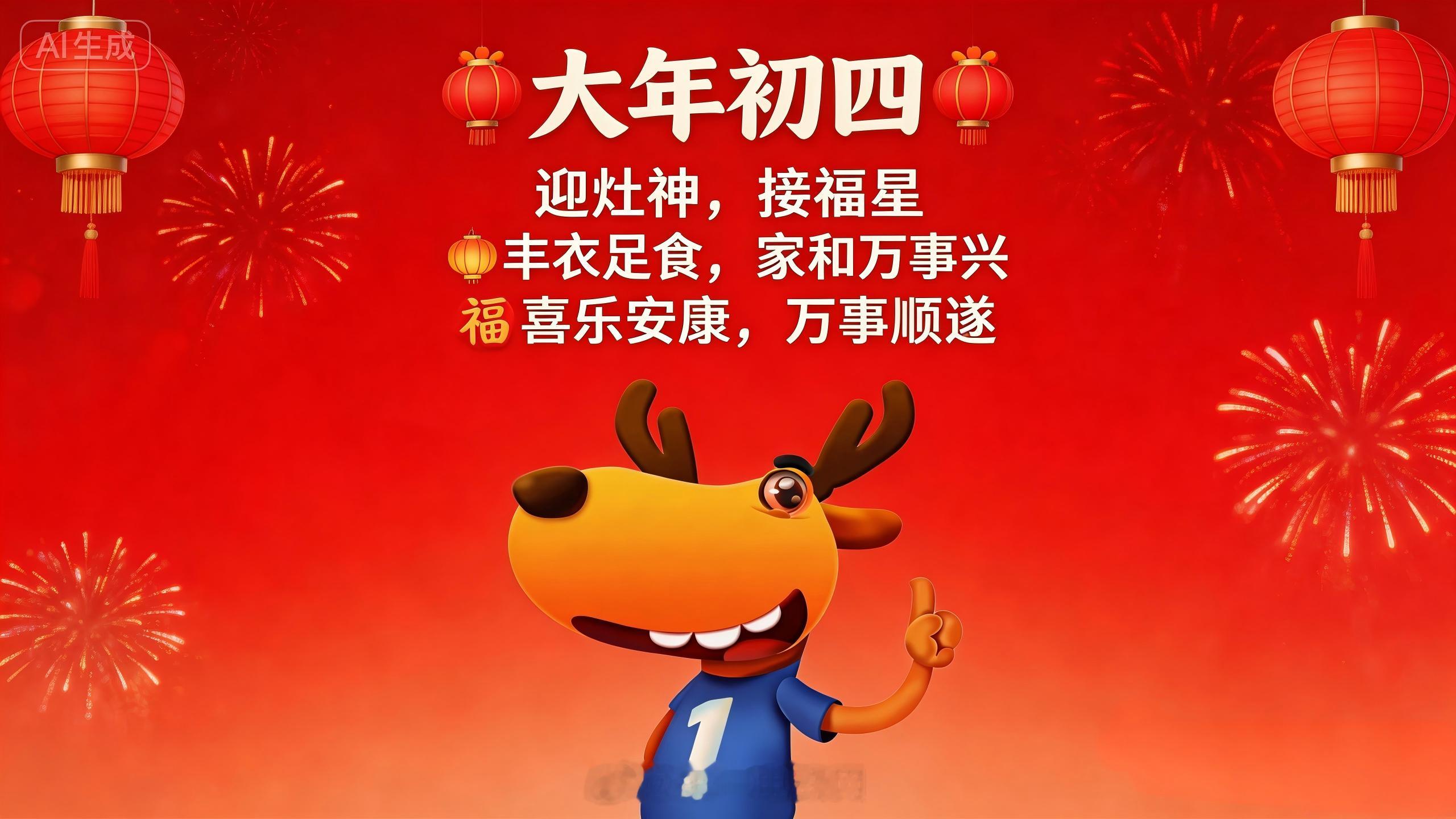 大年初四🧨大年初四,迎灶神,接福星,丰衣足食,家和万事兴。第一电动㊗️各位喜乐安康,万事顺遂💃!拜年