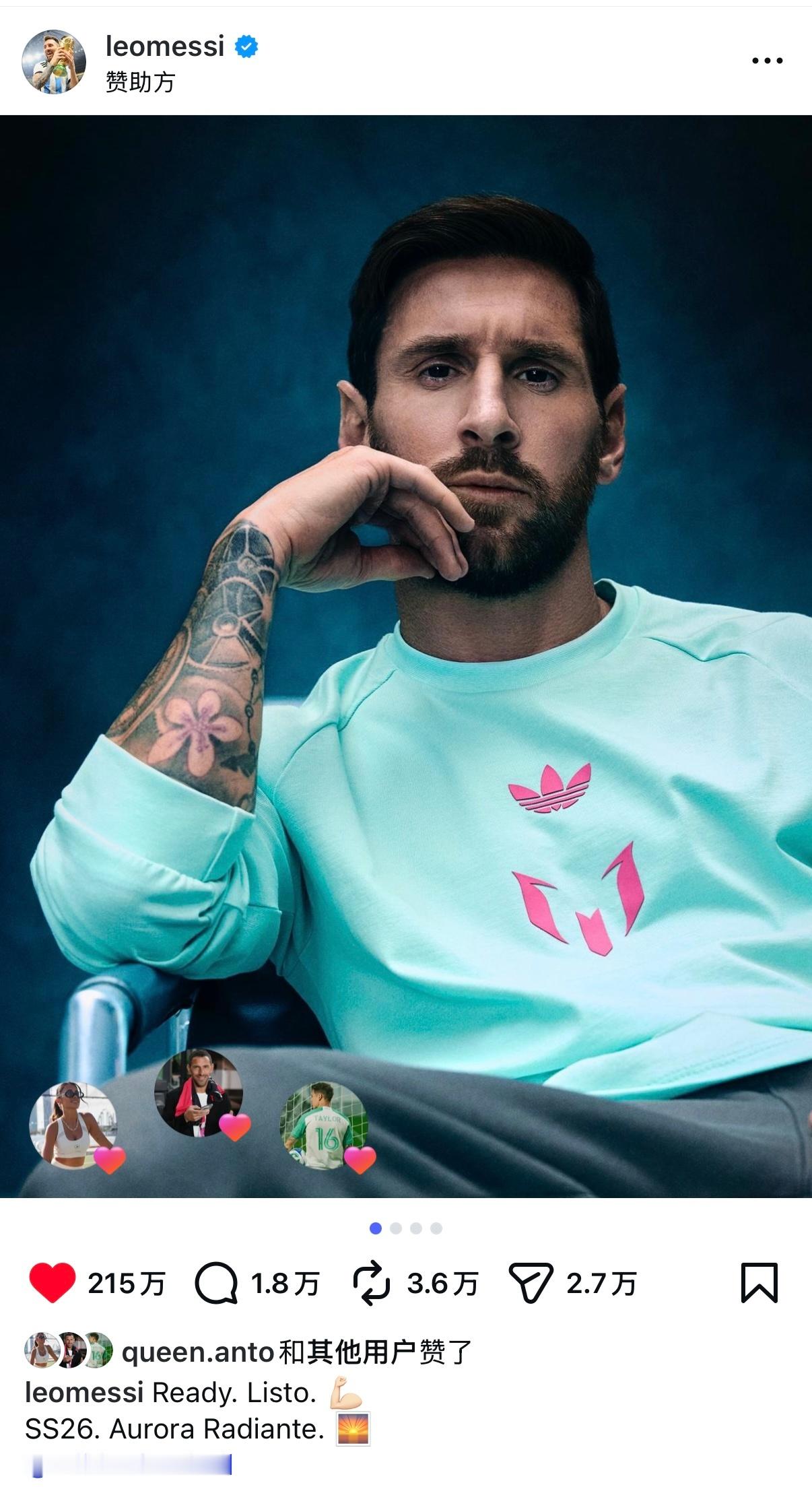 梅西更新ins|准备好了。Listo. 💪🏻SS26. Aurora Rad