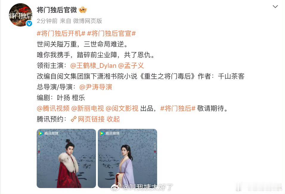 《将门独后》官宣了,王鹤棣一番。来看王鹤棣和孟子义的官宣海报,符合你心中的人选吗?