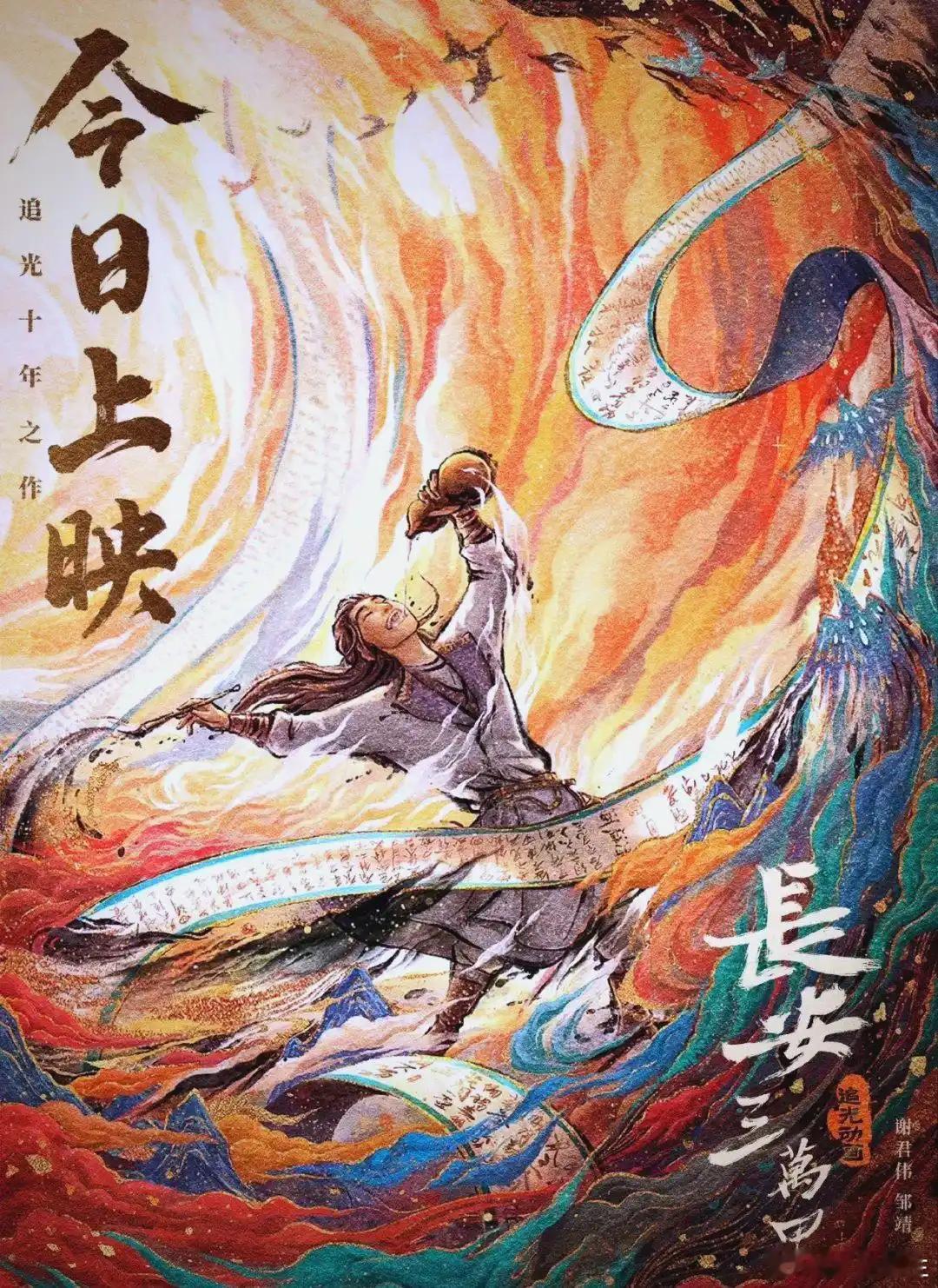 再评《长安三万里》——诗在,长安便在《长安三万里》不只是一部国风动画,更是一场献给中国人的唐诗精神还乡。它以水墨为骨、以诗句为魂,用高适与李白的半生交游,串起盛唐由盛转衰的壮阔史诗,在国漫与传统文化题材中,立起了一座新标杆。影片采用回忆式叙事,以暮年高适的视角回望与李白的相遇相知。从少年相逢、梁园纵酒,到安史之乱、命运殊途,两人一狂一稳、一仙一凡,恰是盛唐文人理想与现实的双重写照:李白是天才的浪漫,也是入世的挣扎;高适是大器晚成的坚守,藏着最朴素的家国情怀。杜甫、王维、贺知章等诗人次第登场,汇成一幅鲜活的大唐诗人群像。全片最动人之处,是诗与命运的深度共生。片中48首唐诗从不是简单堆砌,而是情绪的出口、人生的注解。黄鹤楼的豪情、行路难的困顿、轻舟已过万重山的释然,每一句诗都跟着人物起落,让观众真正读懂:诗不是课本里的文字,是中国人刻在骨血里的情绪与风骨。美学上,影片将东方水墨与国风意境发挥到极致。青绿山水、敦煌意象、吴带当风,从长安盛景到边塞苍茫,从江南烟雨到乱世烽火,每一帧都兼具审美与叙事功能,实现了诗、书、画、舞、乐的完美融合,让“诗意”真正被看见、被听见。影片的内核,早已超越一段历史。它道出一个朴素真理:真正的长安,从不是一座城,而是文脉与精神。 城池会破,时代会变,但只要诗还在、风骨还在,长安就永远不会消失。这既是对盛唐的致敬,也是对当下文化自信最温柔也最有力的诠释。对成年人而言,它是理想与现实的共鸣;对孩子而言,它是唐诗最好的启蒙。《长安三万里》用一部电影证明:国风不死,诗意不灭。只要我们还在读诗,长安,就永远在三万里灯火之中,在我们心中。