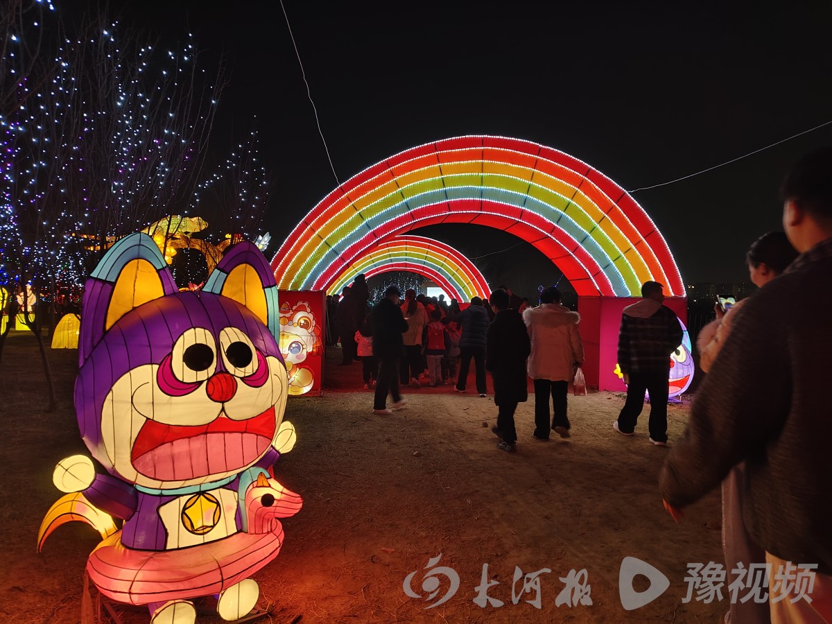 步入游园一路走去,各种特色小吃吸引游客驻足,吹糖人、棉花糖、臭豆腐、炸鸡柳,孩子们在大人带领下,围着一个个摊位大饱口福。晚上7时许,夜幕降临,园区内精心布置的新春灯展正式亮相。五彩缤纷的灯光,如同彩色的银河铺满了大地,点缀其间的各种人物、动物以及常见的动漫造型,引来游客们的兴趣。大家一路走、一路看,纷纷拍照打卡,留下美好瞬间。