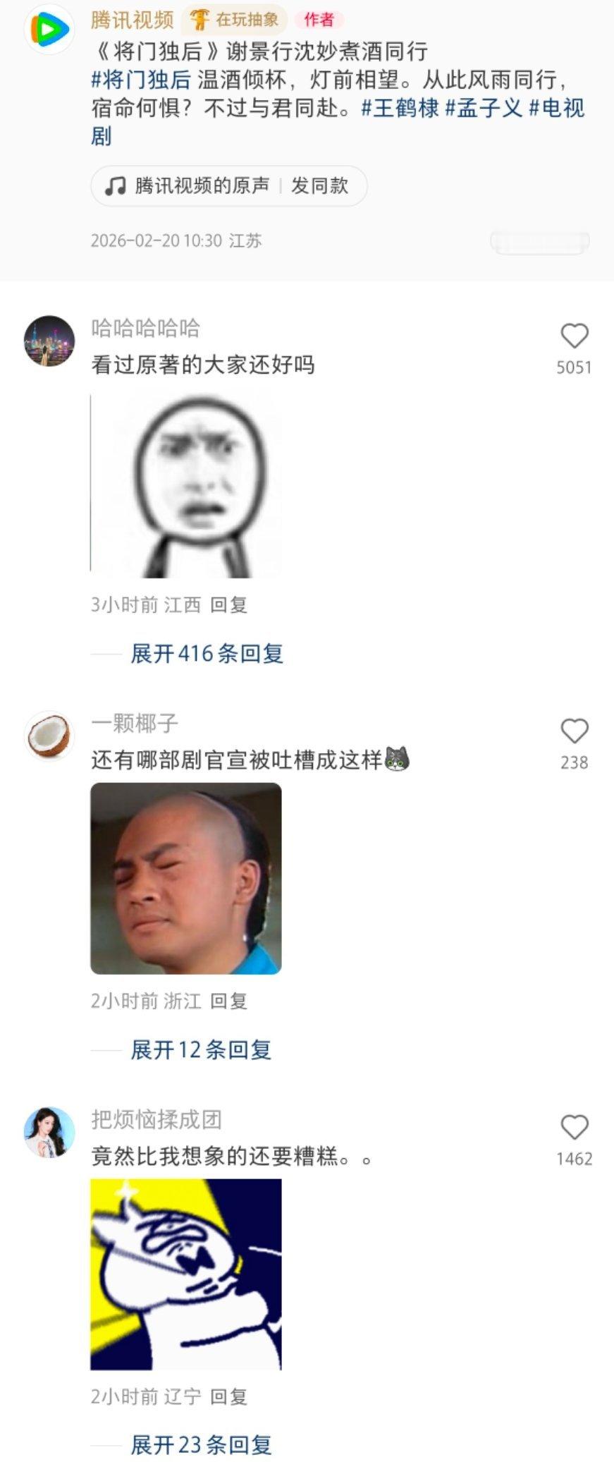 将门独后官宣王鹤棣孟子义 居然没有粉丝空瓶了???官宣下面全是真实评论