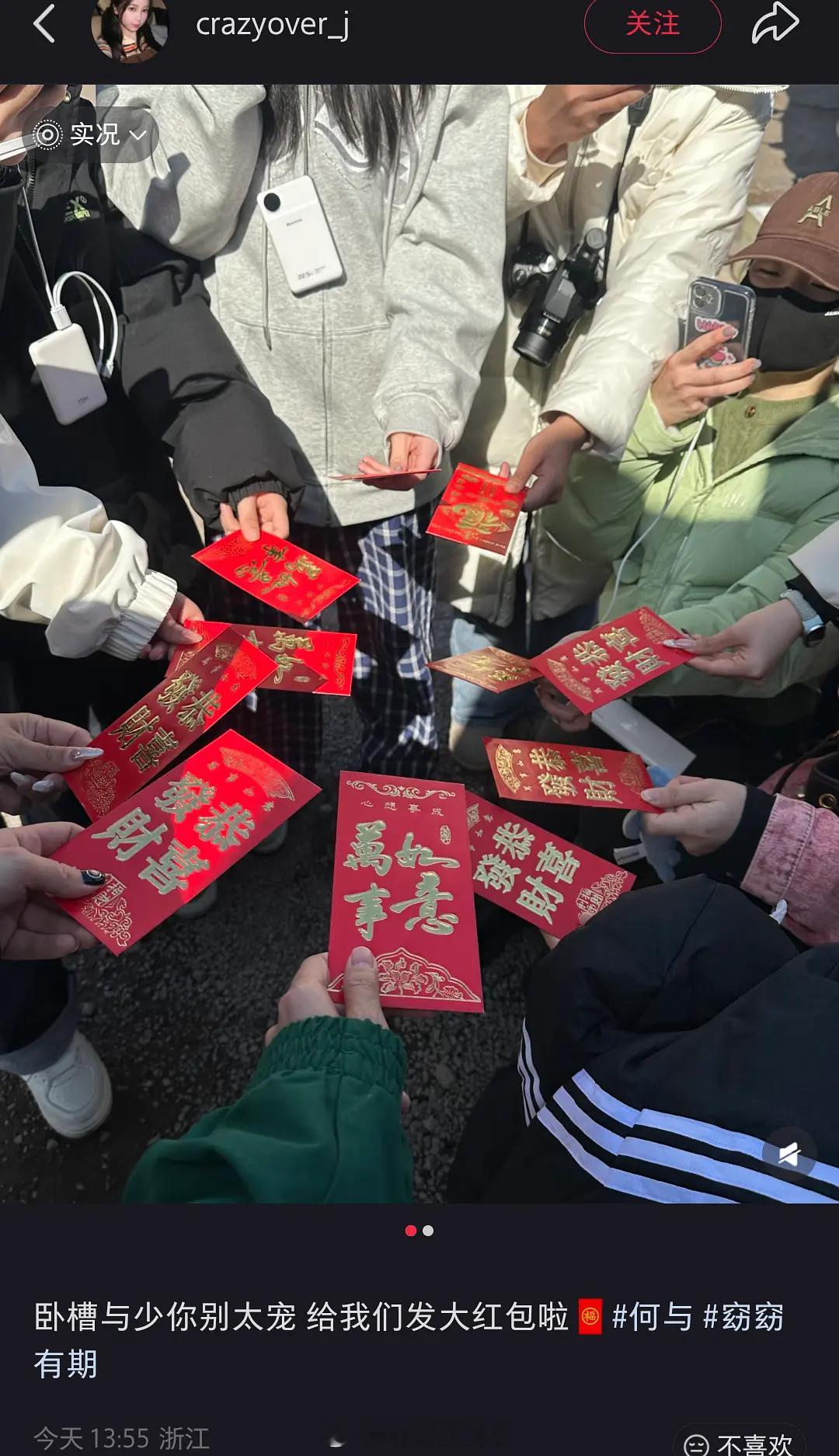何与发红包了,片场粉丝每人一百,见者有份。很圈粉吧?