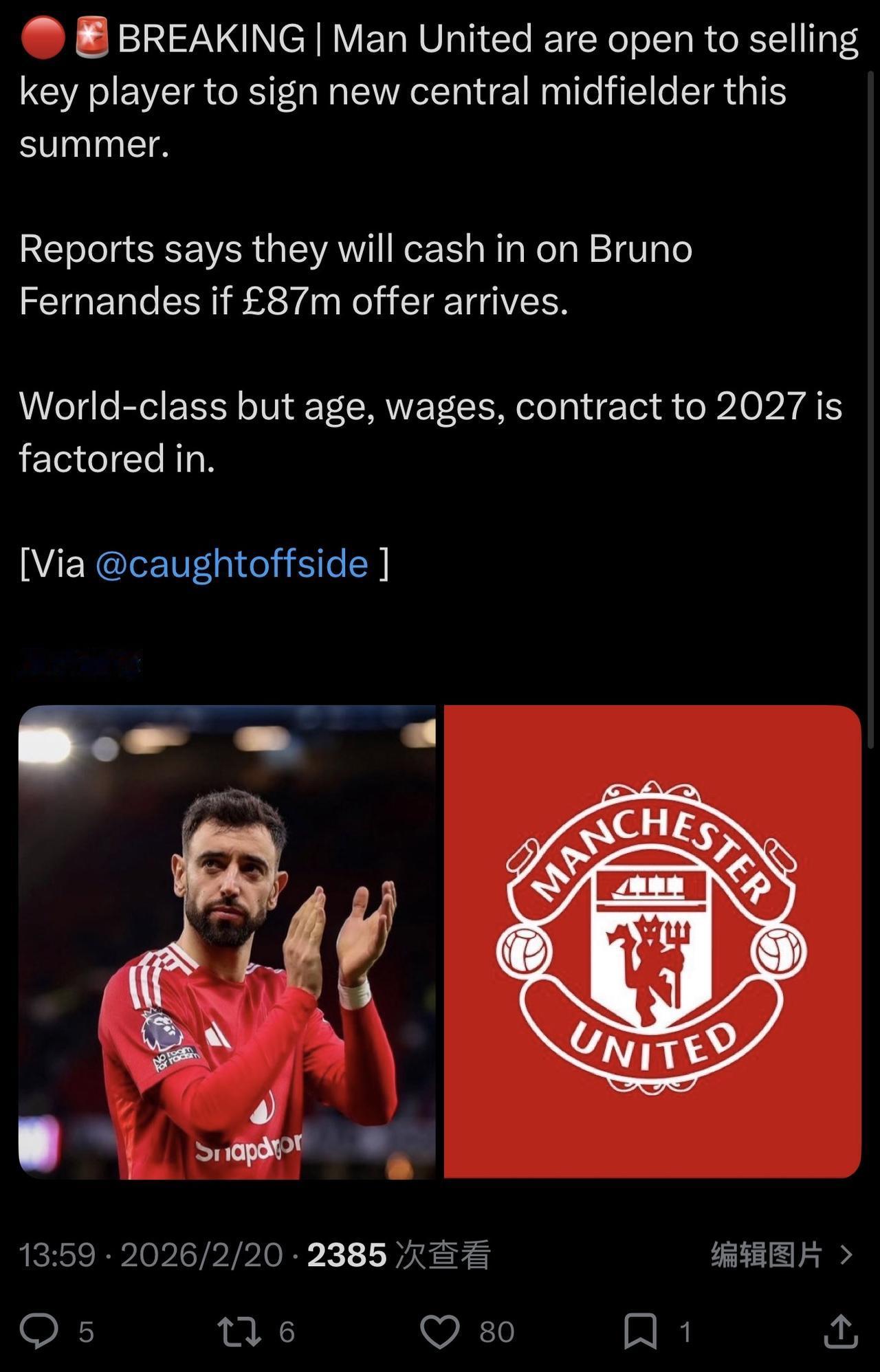 曼联就该卖掉B废,用库尼亚踢2前锋,谢什科顶在中锋位置。 或者姆贝乌莫和库尼亚踢伪双前锋。 然后用卖B废的钱,彻底升级后腰位置。 ……………………………………………………………… 突发新闻 | 曼联愿意出售关键球员,以便在今夏签下新的中场球员。 有报道称,如果收到 8700 万英镑的报价,他们将出售布鲁诺·费尔南德斯套现。 世界一流,但年龄、工资、到2027年的合同等因素都需要考虑。