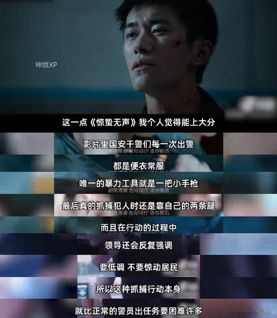 惊蛰无声电影照进现实《惊蛰无声》最戳我的一点,是把国安人的真实日常拍出来了。黑衣、低调、隐于人群,连打斗都尽量无声,现实里他们就是这样默默守护。看完真的会主动去了解国安工作,这才是好电影的意义。