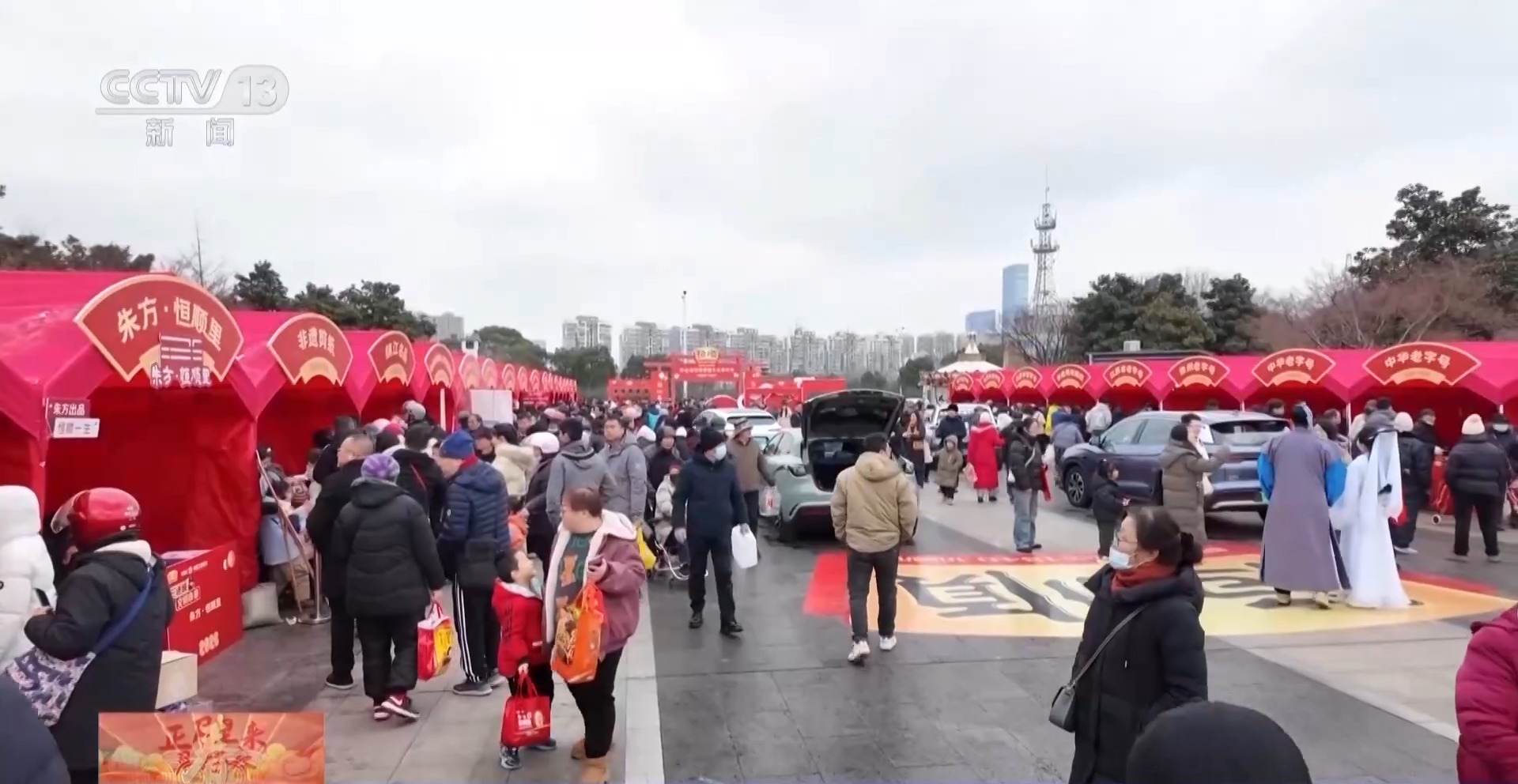 总台央视记者赵雨彤:镇江有句老话,不打酱油不过年。我就在镇江打酱油年俗大集的现场。虽然昨晚下了雪,但大家的热情依然不减,早早地就来排队了。