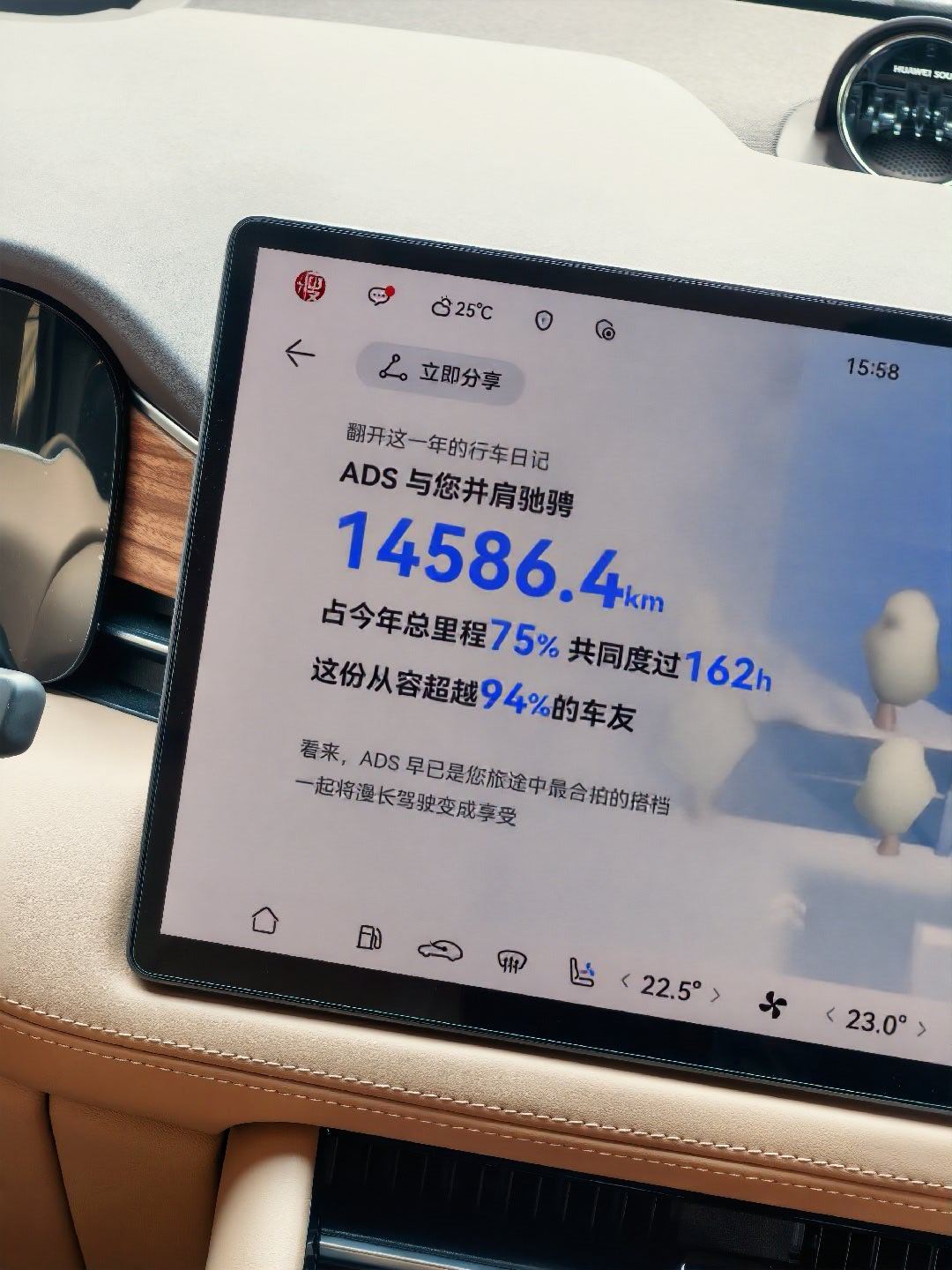 科技汽车就选鸿蒙智行 说起来,鸿蒙智行也陪伴了一年多了,确实舒服。春节前推送了新版本,最近蛇年的ADS出行报告也出来了。现在对我来说,ADS属于旦用难回的状态。朋友说我太依赖它了,但更多还是我自己知道,怎么去用好它。现阶段都还是辅助状态,经常跑小长途,它确确实实带给我非常多的轻松感。三万多的里程,ADS占比一直都在2/3以上。什么时候该接管,心理有数。现在做到了人车共驾的一个状态。不知道今年小7还得让我造多少公里