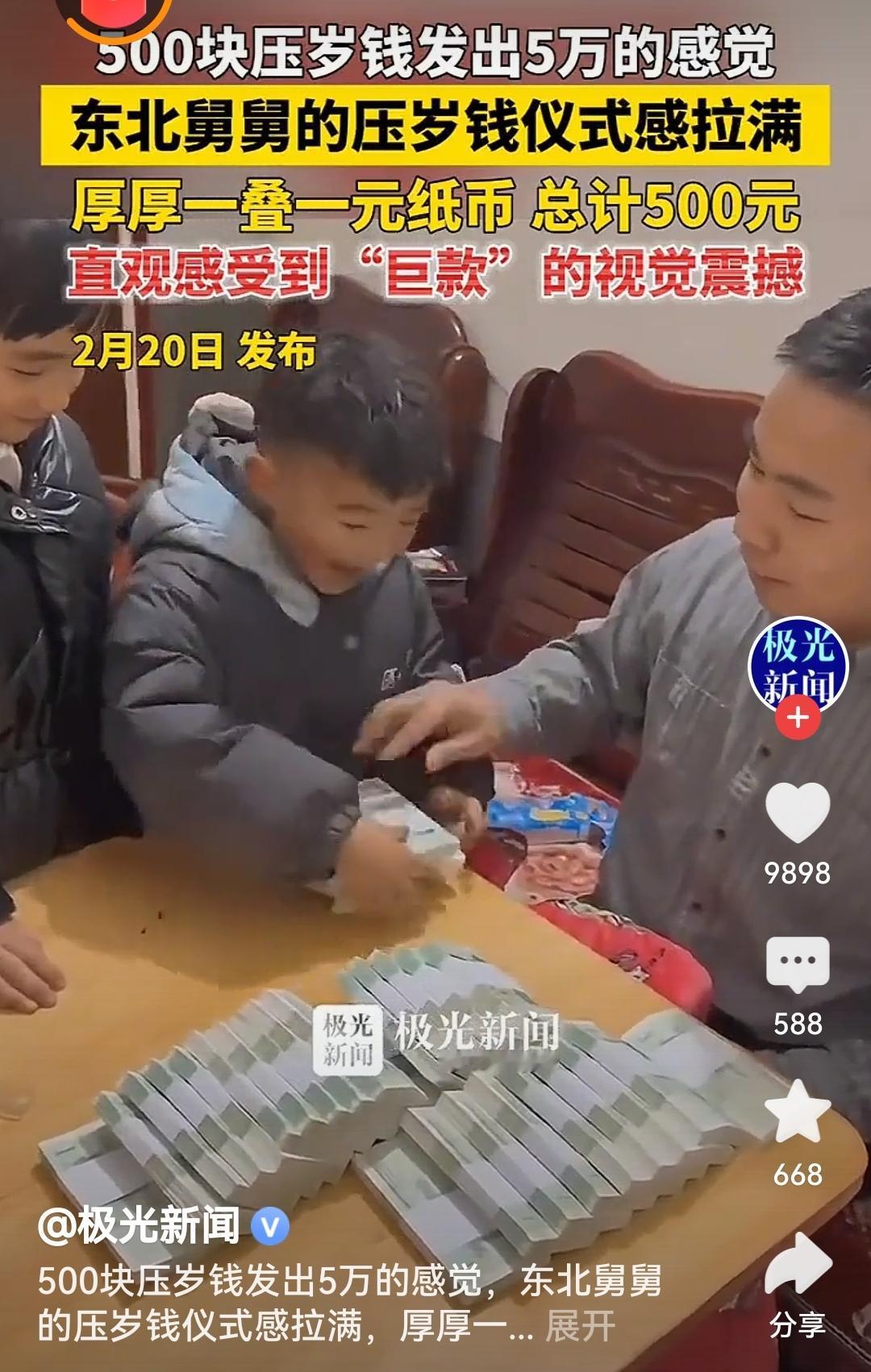 500块压岁钱发出5万的感觉东北舅舅这压岁钱仪式感拉满,500元一元纸币堆成小山,看着就像“巨款”。这不仅是钱,更是满满的爱和年味,让孩子在仪式感里感受亲情,太暖心了![比心][比心][比心] 小孩儿压岁钱 评论打卡任务