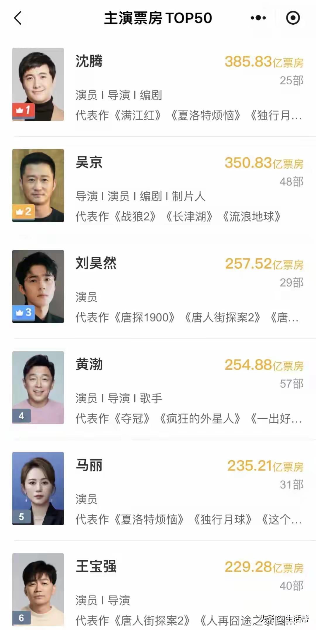 沈腾稳坐中国电影票房最高男主演从《夏洛特烦恼》到《飞驰人生3》,沈腾用一部部作品证明了自己的实力与观众缘。385.83亿票房的背后,是他对表演的热爱与坚守,实至名归,期待他带来更多欢笑与惊喜![赞][赞][赞] 沈腾票房号召力 评论打卡任务