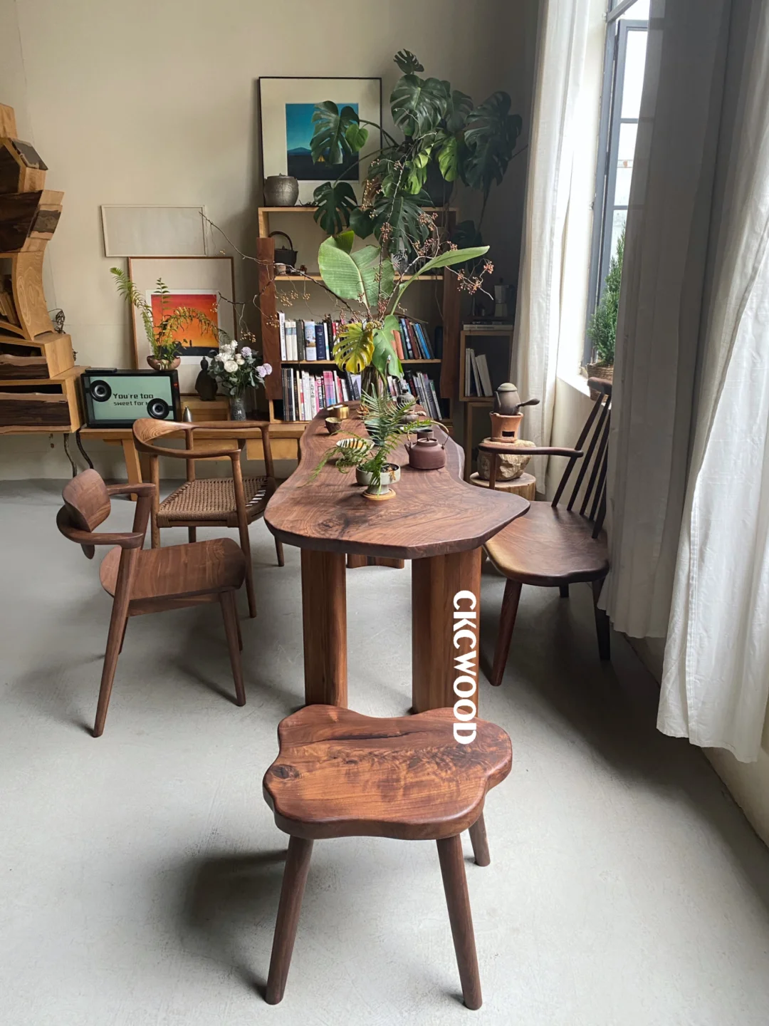 搞了张野生茶桌|黑胡桃不规则桌子氛围拉满