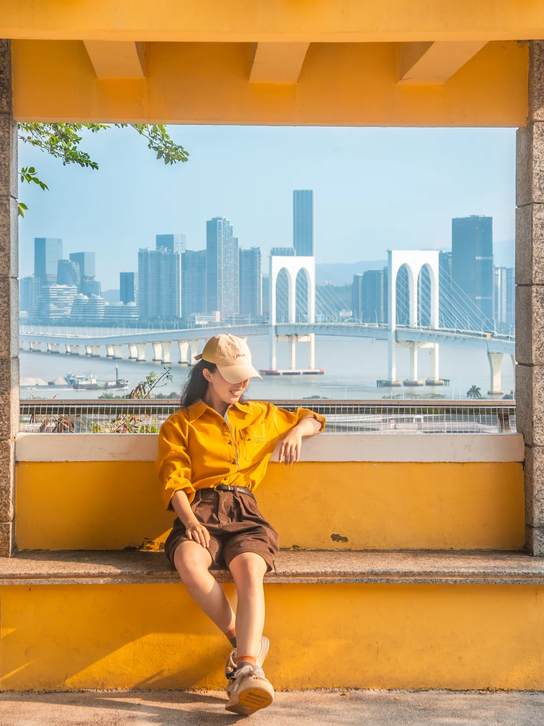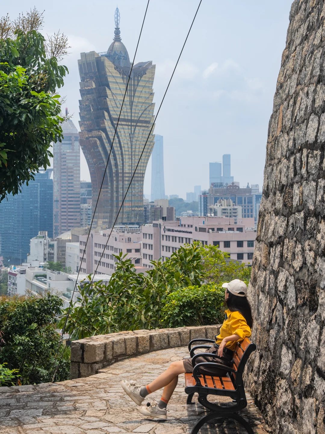 图❶① 去东望洋灯塔上,找那个和新葡京同框的长椅,氛围感拉满