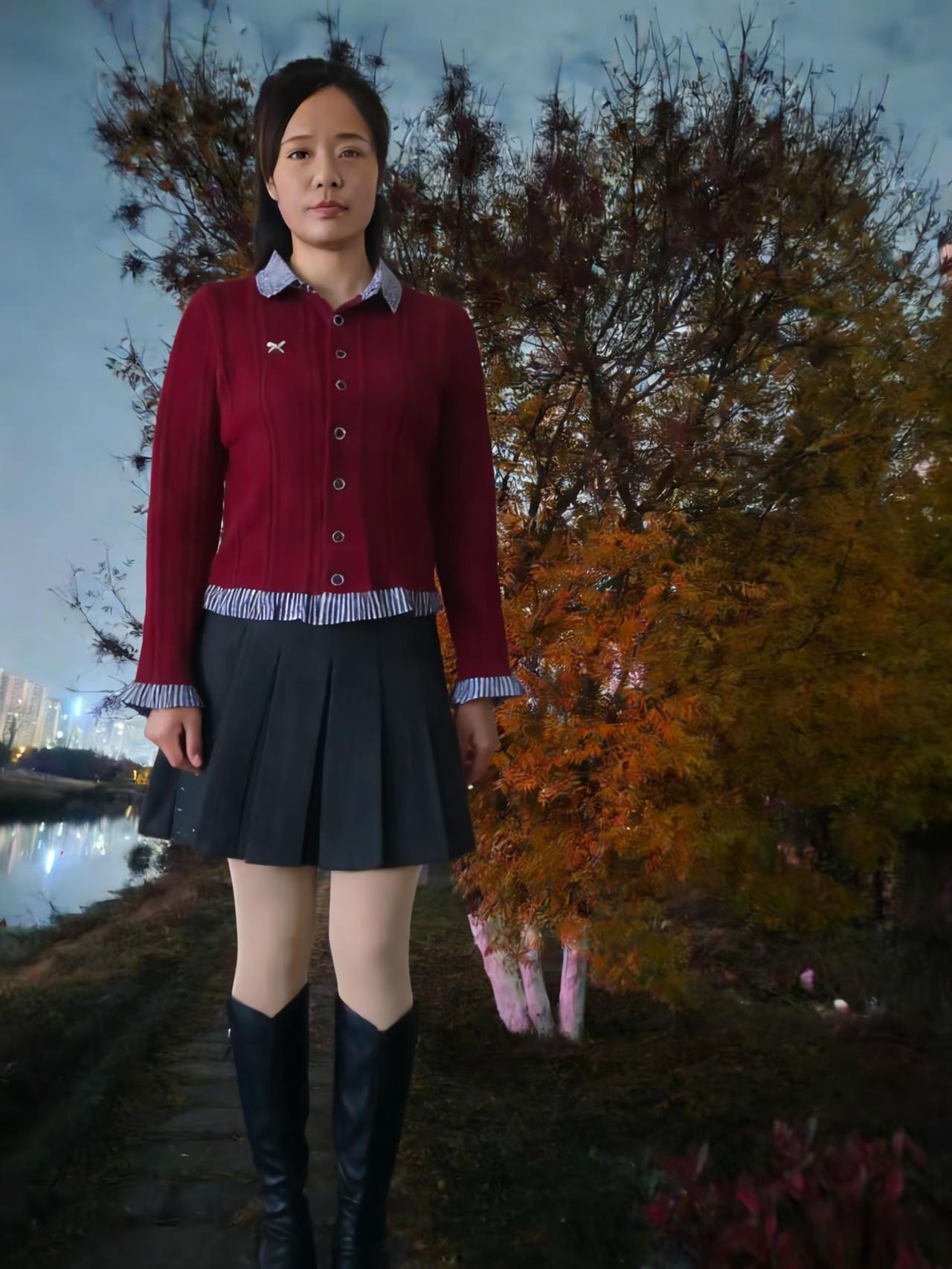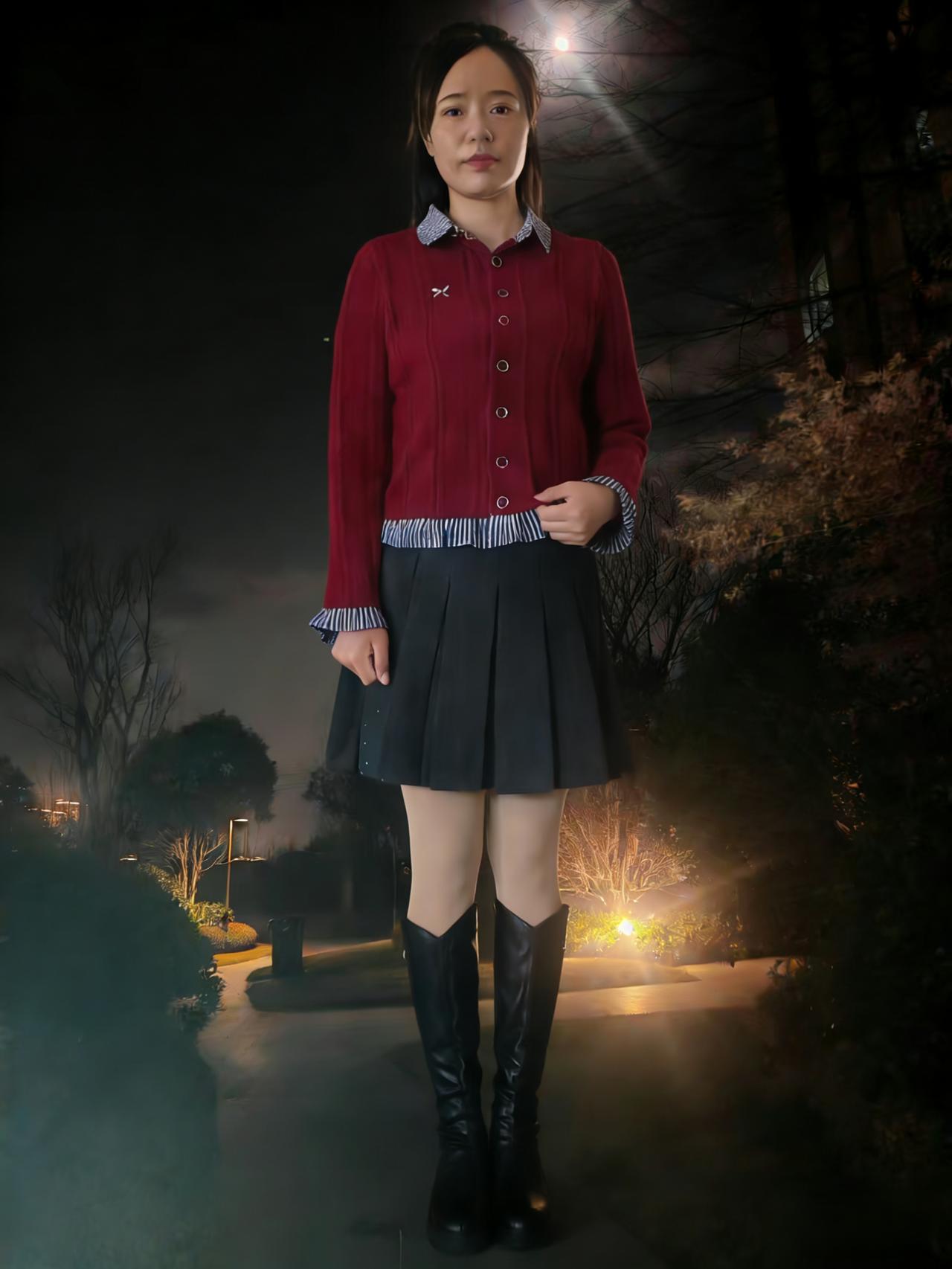 路灯把影子揉成模糊的光斑 你从雾里走来,红毛衣是唯一的明火 黑裙在风里摆动,像夜的裙裾 灌木丛屏住呼吸,听靴子轻叩路面 ~ 远处的楼宇亮着零星的灯 是城市未眠的眼睛 你站在树下,被橙黄的光晕包裹 像一幅刚完成的油画 颜料里还带着松节油的清香 ~ 身后的河水泛着碎银 把你的影子揉进波纹里 当你转身,红毛衣掠过夜色 便点燃了整条小径 我们都在等一场雪 等它落在你的发梢 像岁月递来的一封素白的信