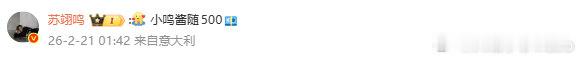 评论区表示: 小鸣酱随500? 苏翊鸣说随500 苏翊鸣又开始随份子了
